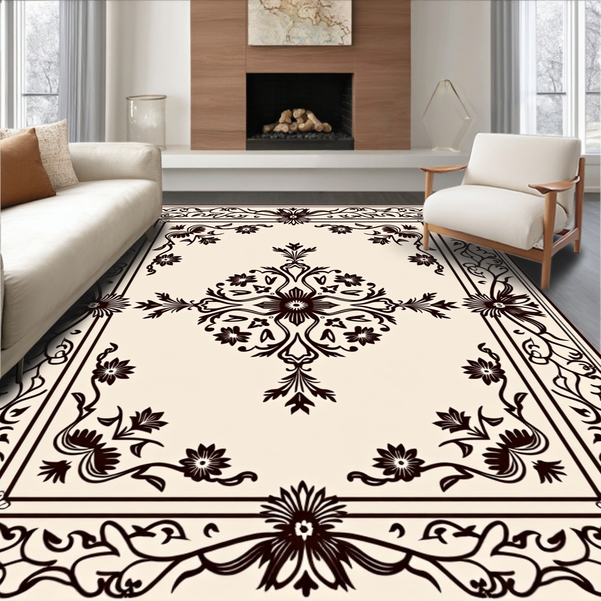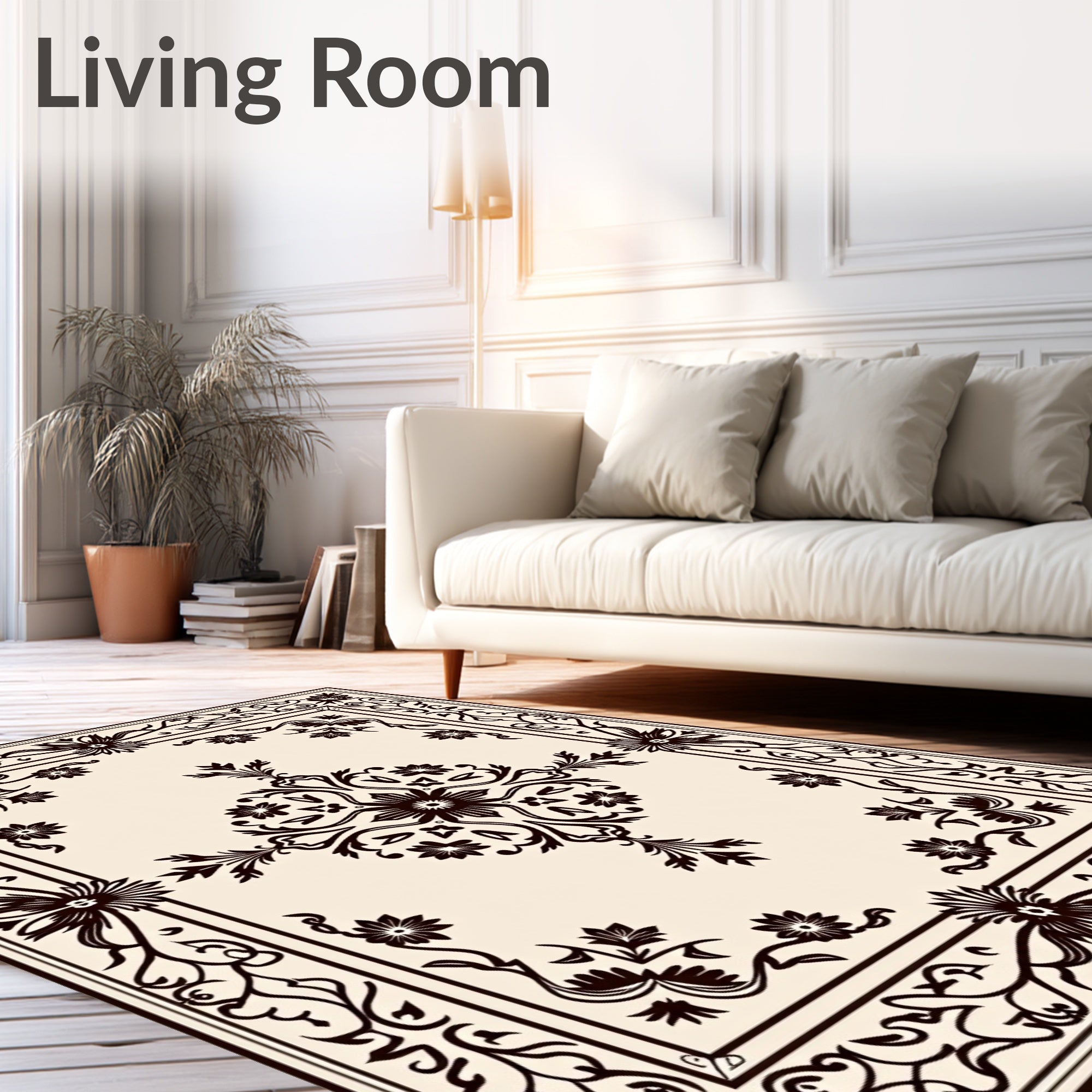 Flatwoven High Traffic Area Rug, Traditional Floral Damask Transitional Elegant Sophisticated, Non Slip, Stain Resistant, Washable Area Rugs for Living Room, Bedroom (Beige) Overview: