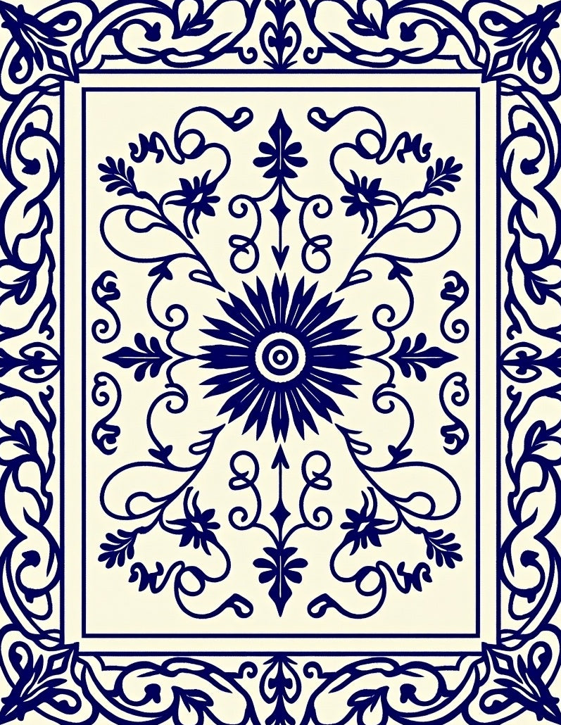 Traditional Floral Scrollwork Revival Heirloom Crafted (Blue)