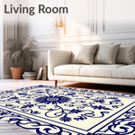 Flatwoven High Traffic Area Rug, Traditional Floral Scrollwork Revival Heirloom Crafted, Non Slip, Stain Resistant, Washable Area Rugs for Living Room, Bedroom (Blue) Overview: