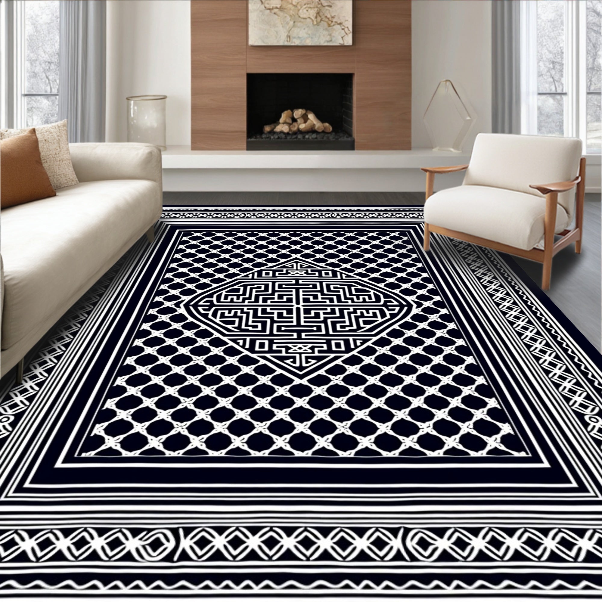 Flatwoven High Traffic Area Rug, Traditional Lattice Symmetrical Ancient, Non Slip, Stain Resistant, Washable Area Rugs for Living Room, Bedroom (Black) Overview:
