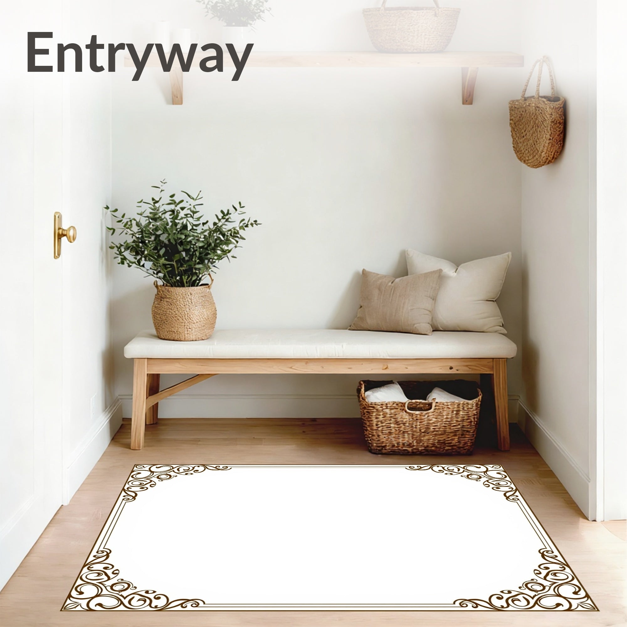 Flatwoven High Traffic Area Rug, Traditional Rococo Blossom Design Featuring Baroque Filigree, Non Slip, Stain Resistant, Washable Area Rugs for Living Room, Bedroom (Brown) Overview: