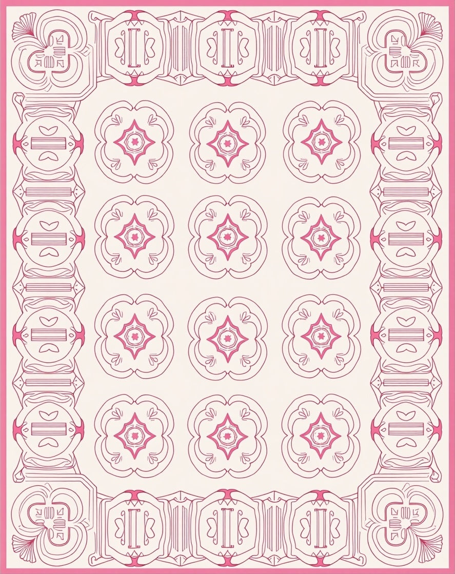 Flatwoven High Traffic Area Rug, Trellis Symphony Baroque Luxury Nouveau, Non Slip, Stain Resistant, Washable Area Rugs for Living Room, Bedroom (Pink) Overview: