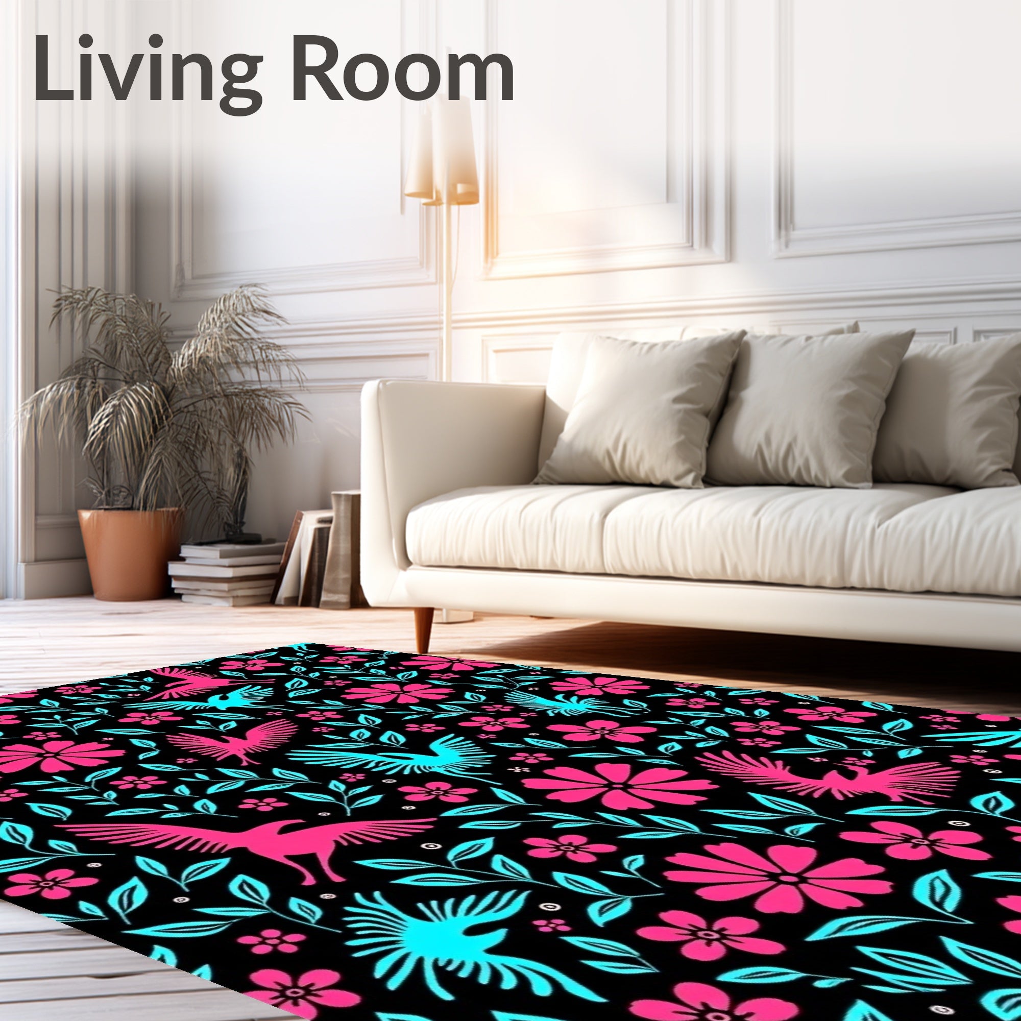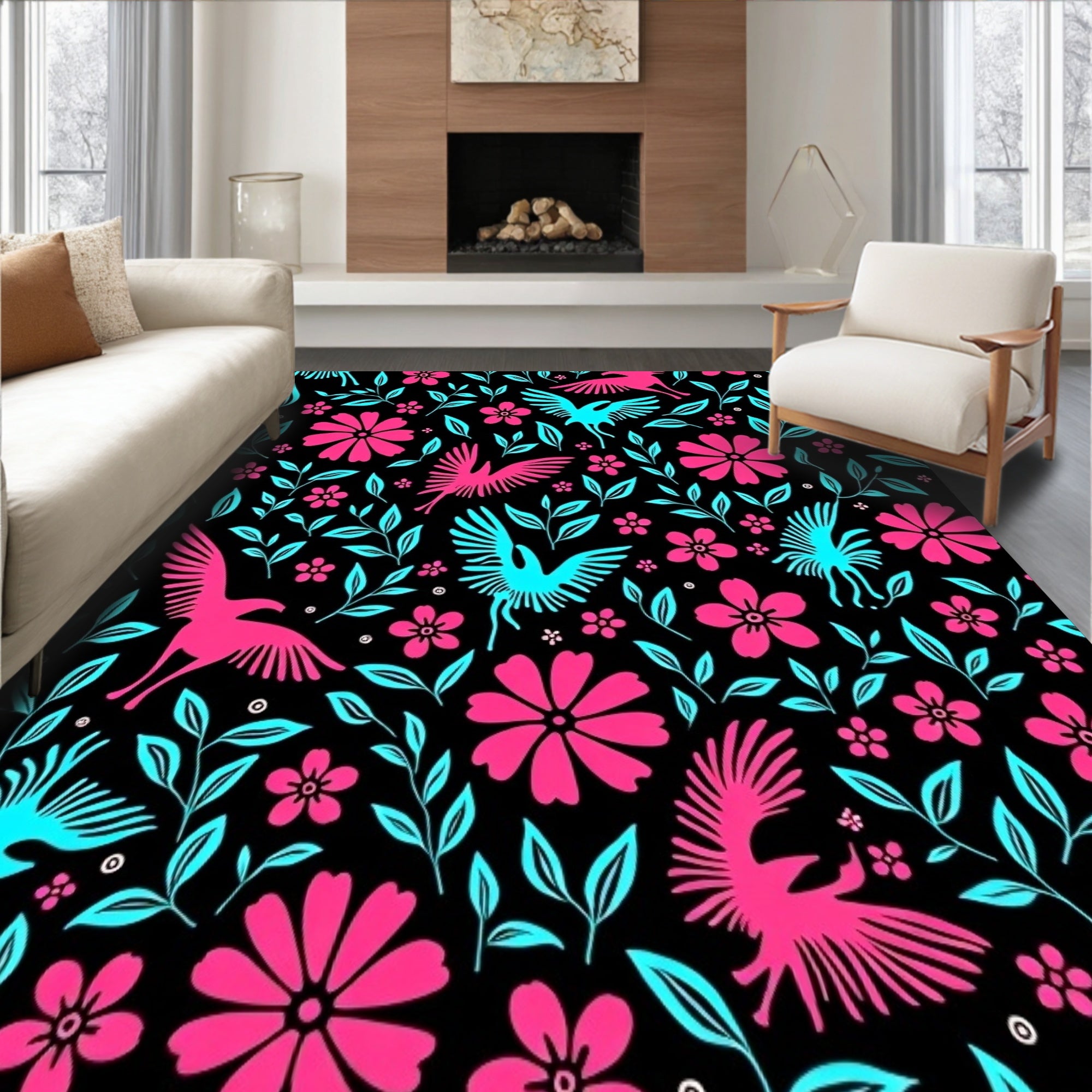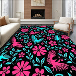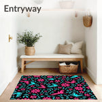 Flatwoven High Traffic Area Rug, Tropical Bloom Motif Slip Resistant, Non Slip, Stain Resistant, Washable Area Rugs for Living Room, Bedroom (Black) Overview: