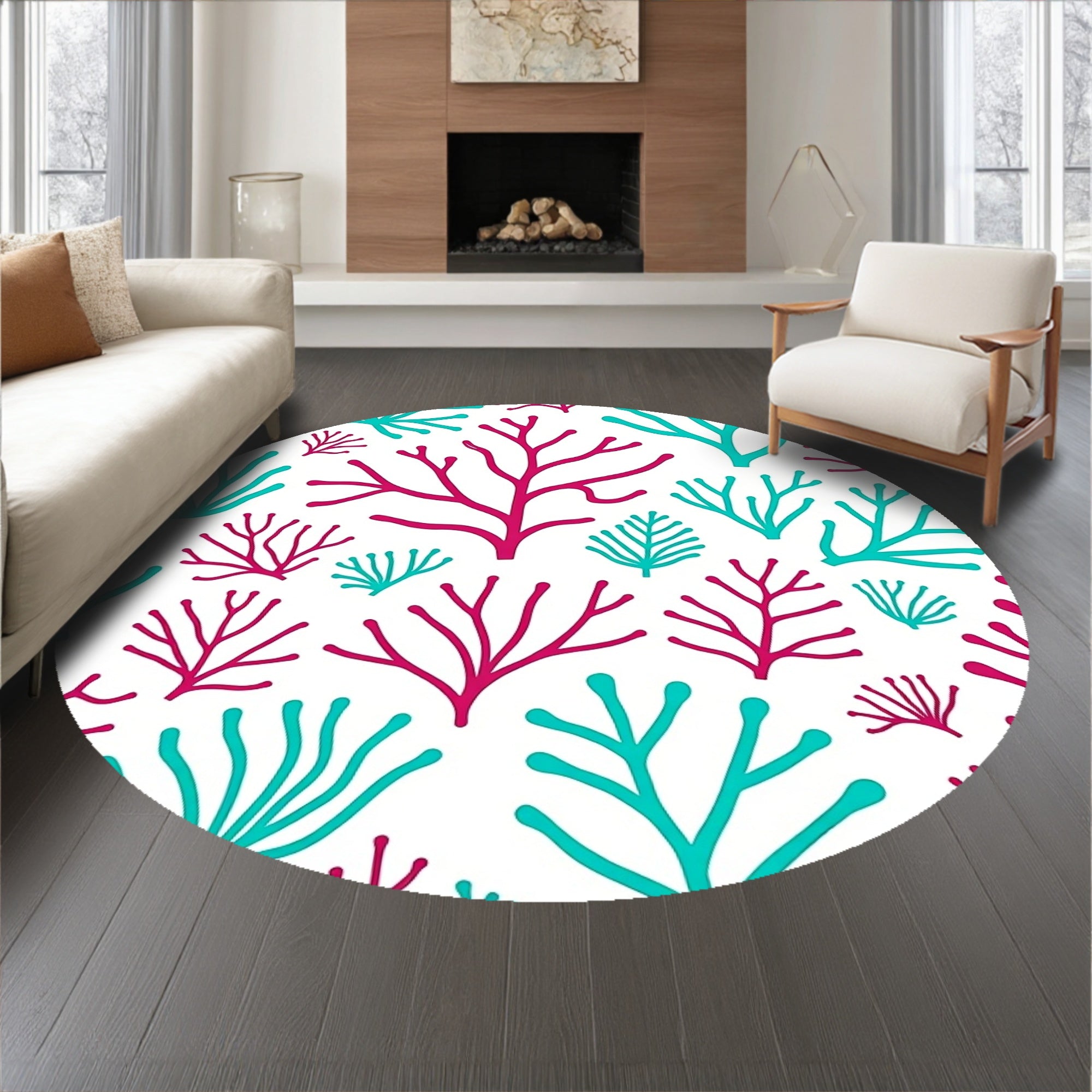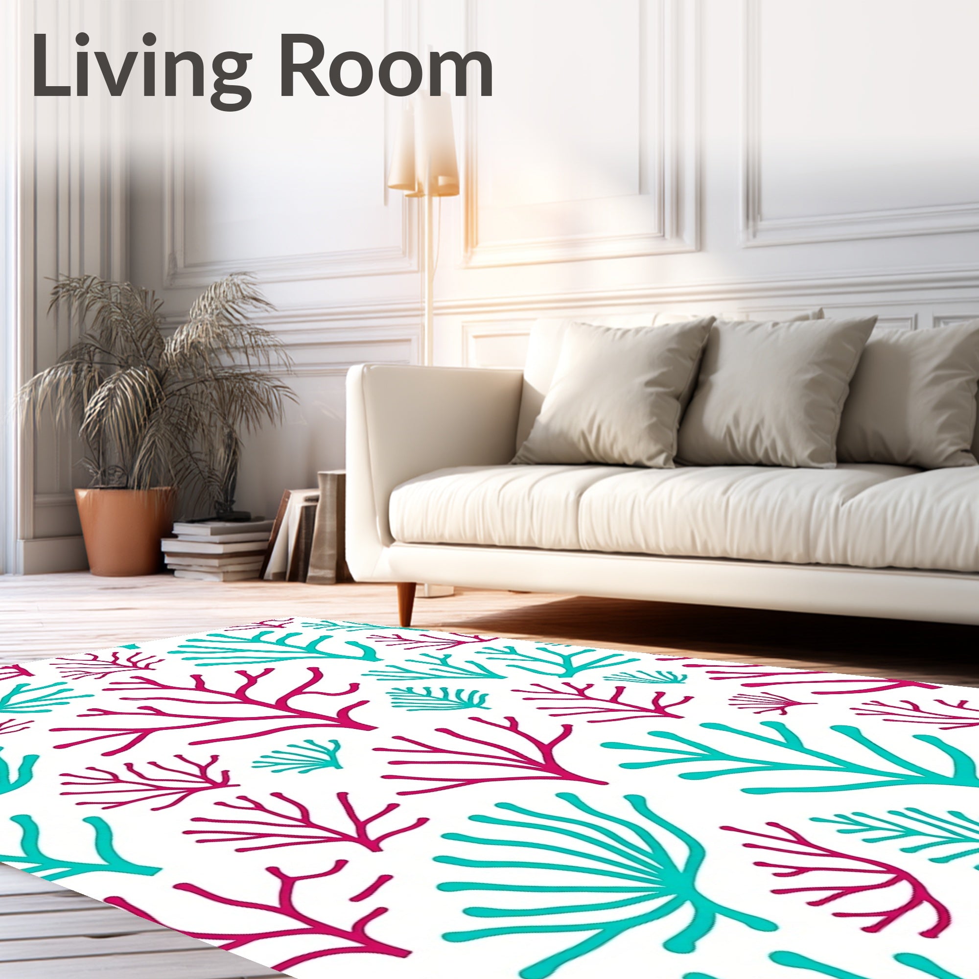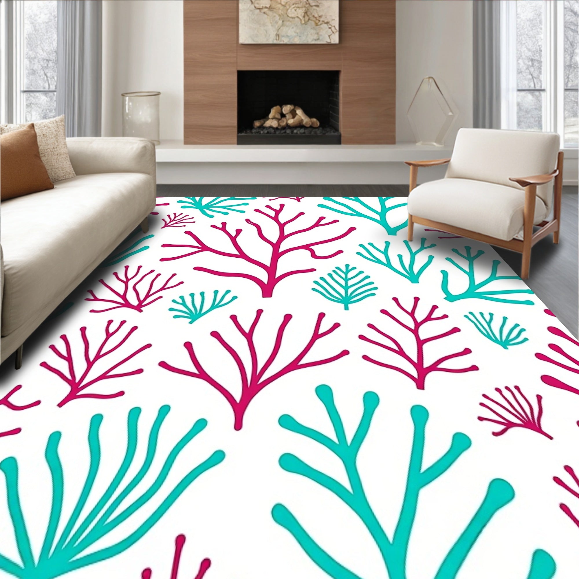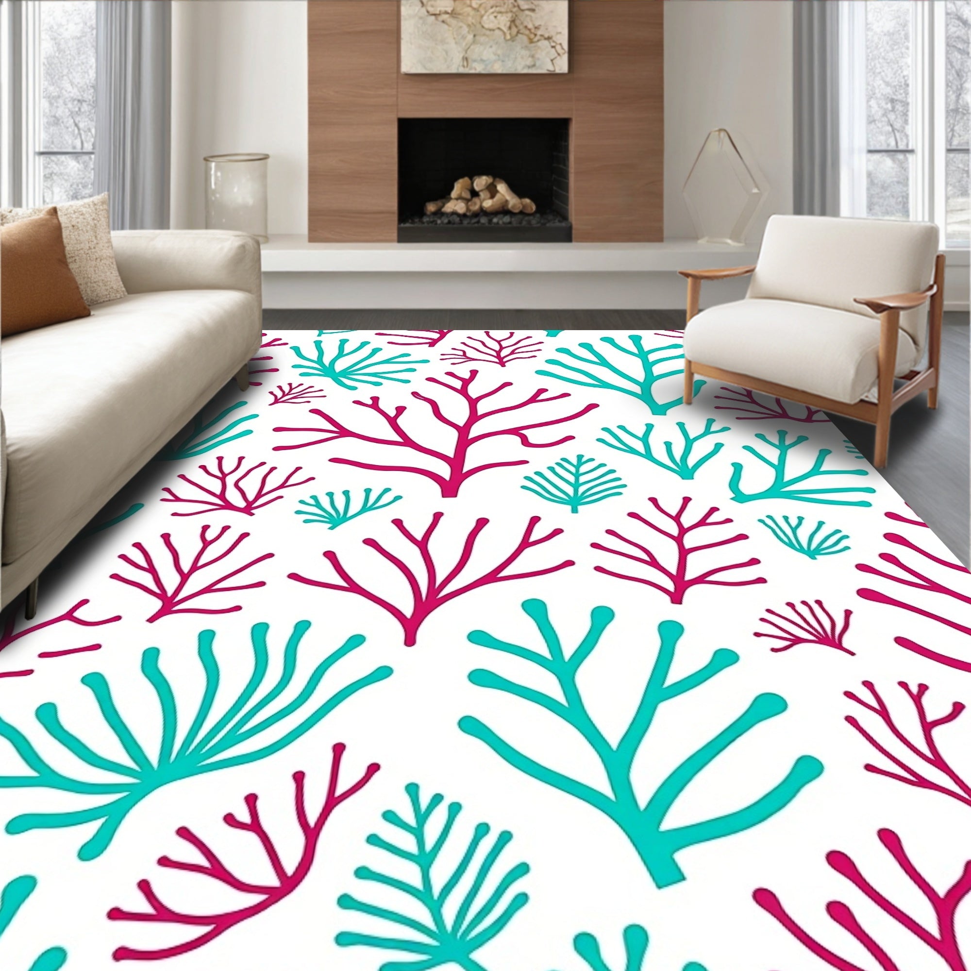 Flatwoven High Traffic Area Rug, Tropical Coral Reef Branch Network Design, Non Slip, Stain Resistant, Washable Area Rugs for Living Room, Bedroom (Pink) Overview: