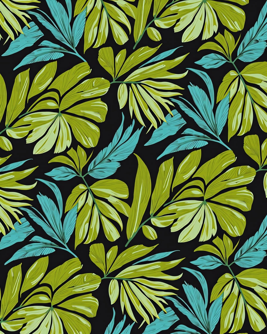 Tropical Foliage Exotic Leaf Artisan Handpainted (Green)