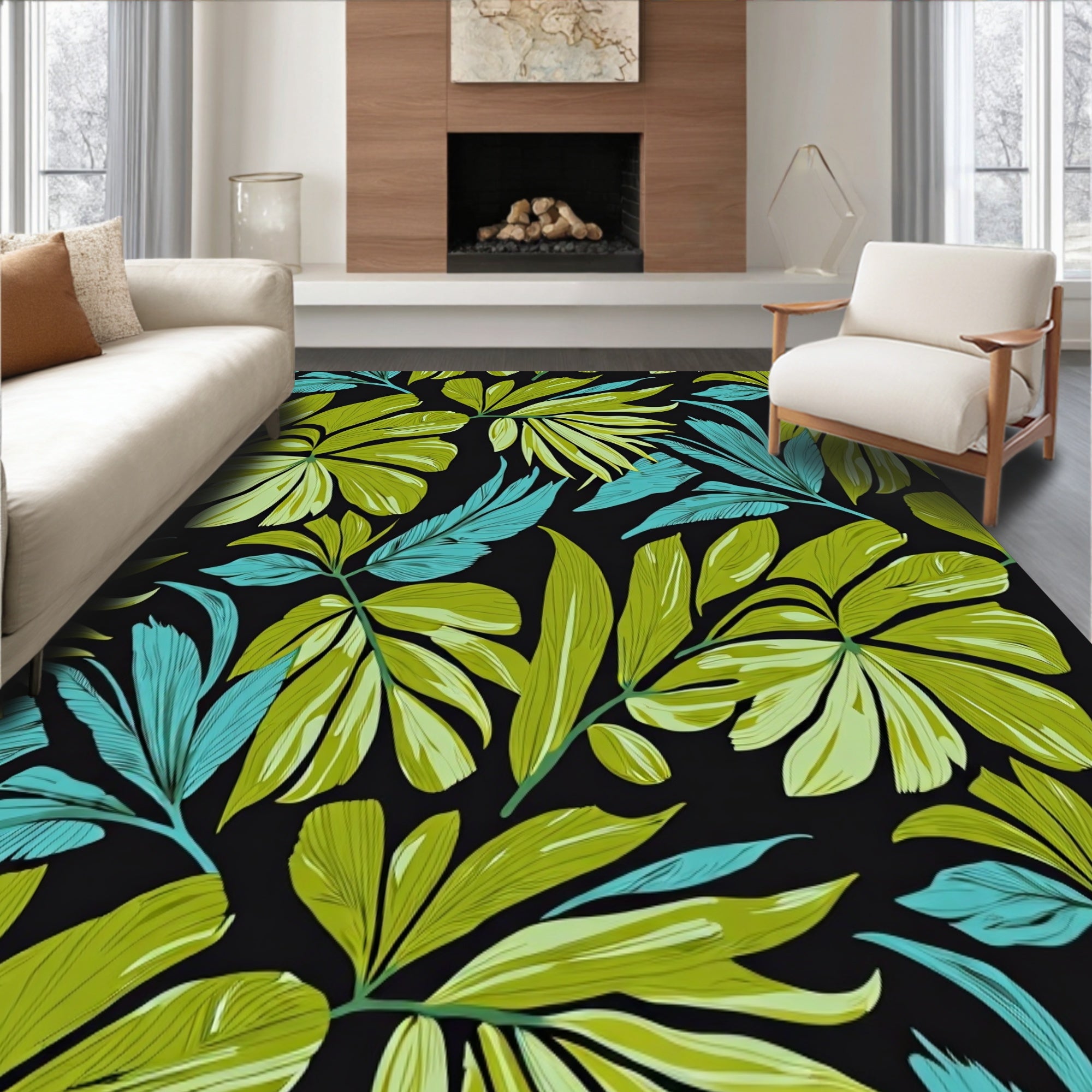 Flatwoven High Traffic Area Rug, Tropical Foliage Exotic Leaf Artisan Handpainted, Non Slip, Stain Resistant, Washable Area Rugs for Living Room, Bedroom (Green) Overview: