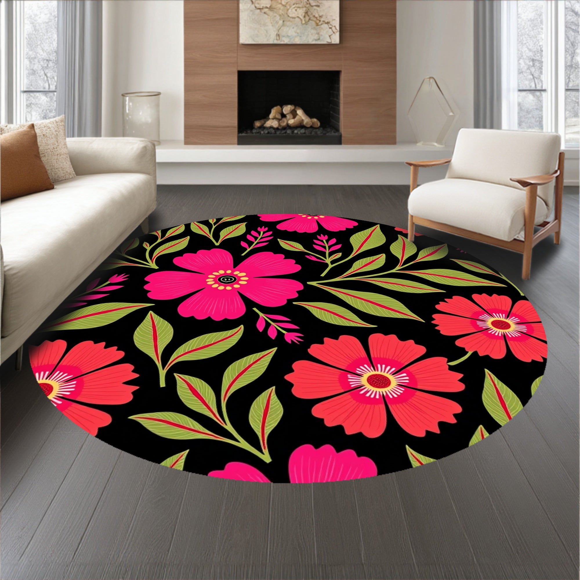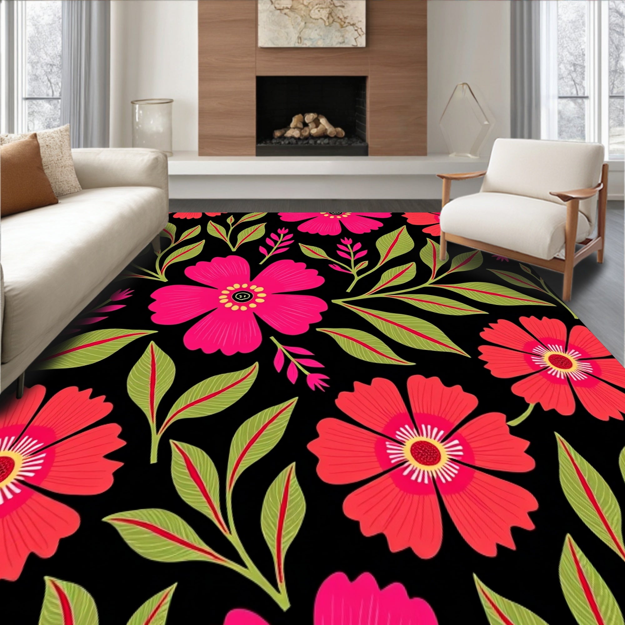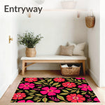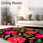 Flatwoven High Traffic Area Rug, Tropical Hibiscus Print Non Skid Surface Treatment, Non Slip, Stain Resistant, Washable Area Rugs for Living Room, Bedroom (Pink) Overview: