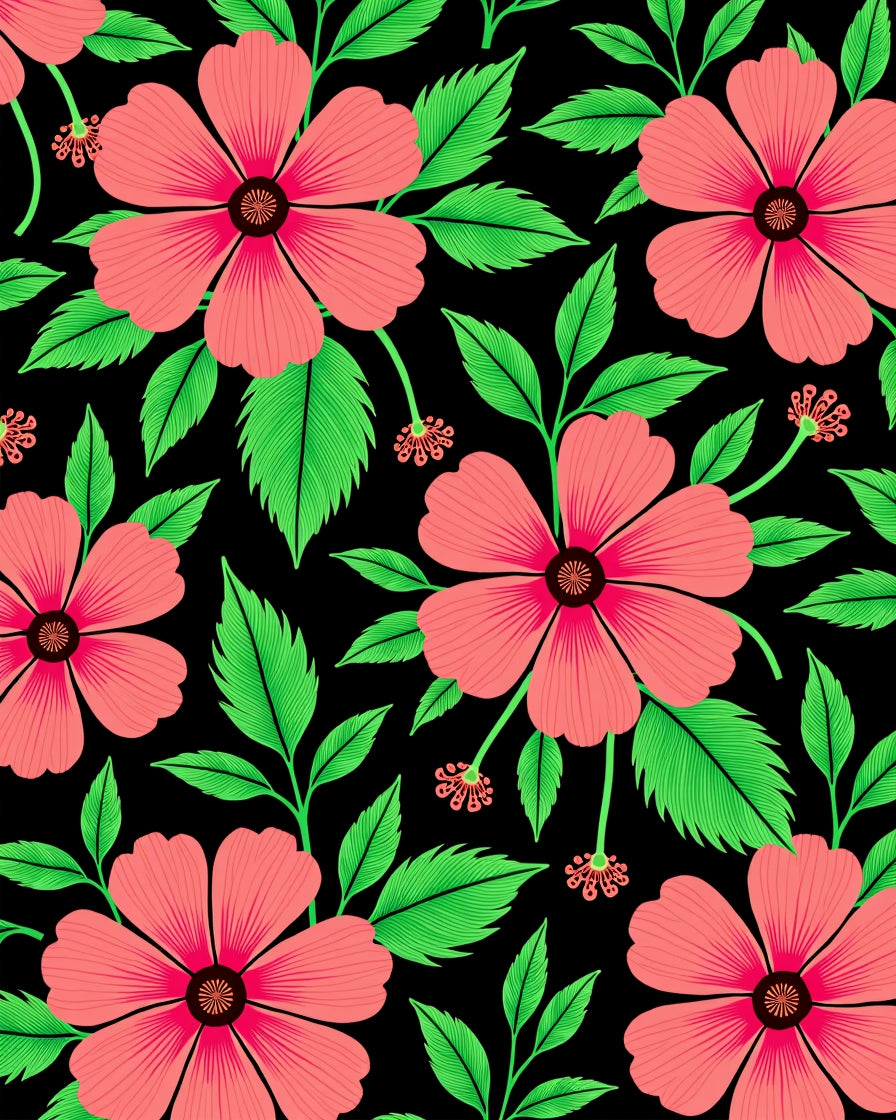Tropical Hibiscus with Exotic Botanical Illustrations (Pink)
