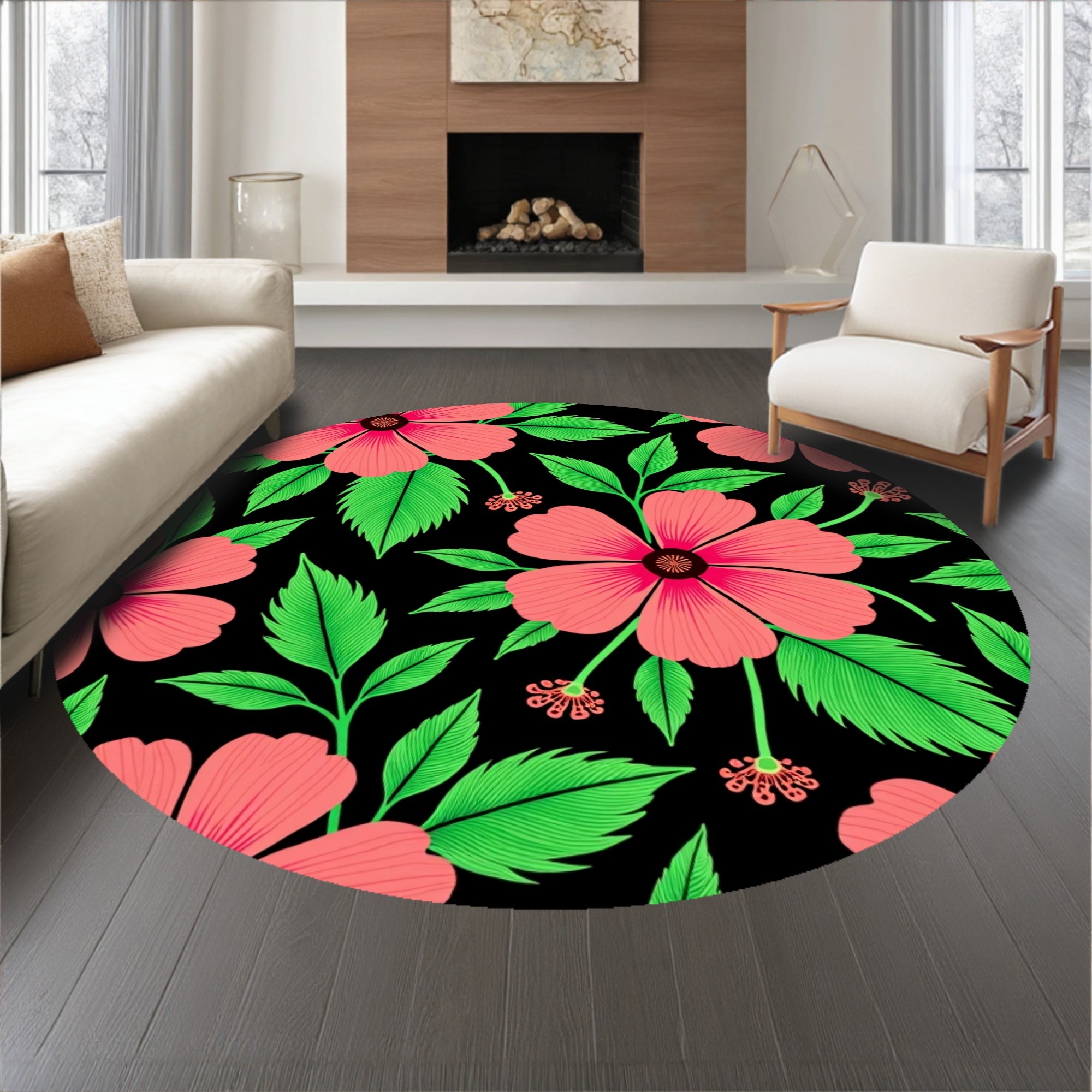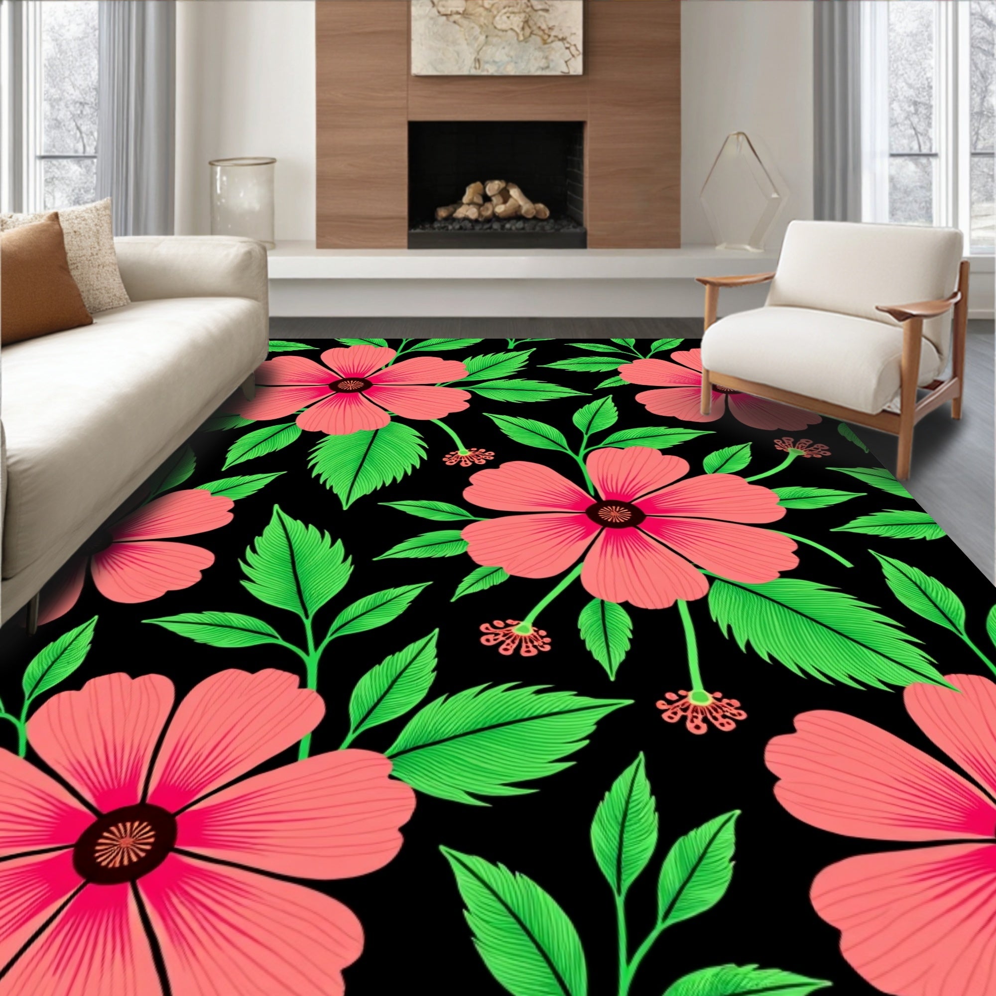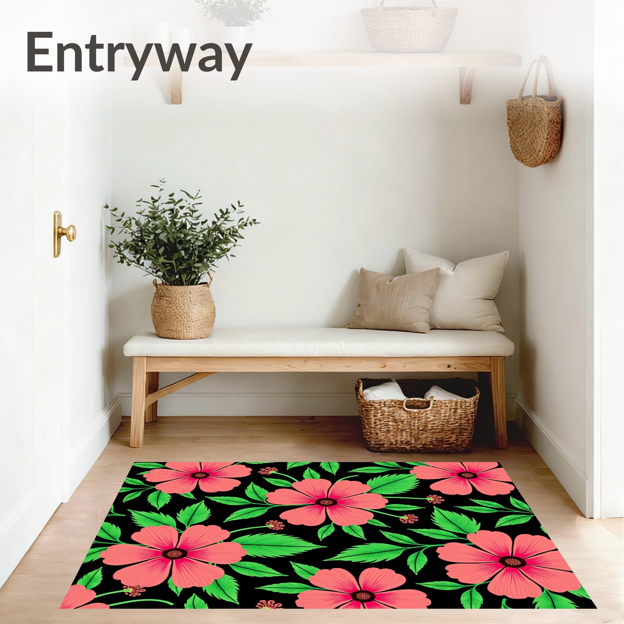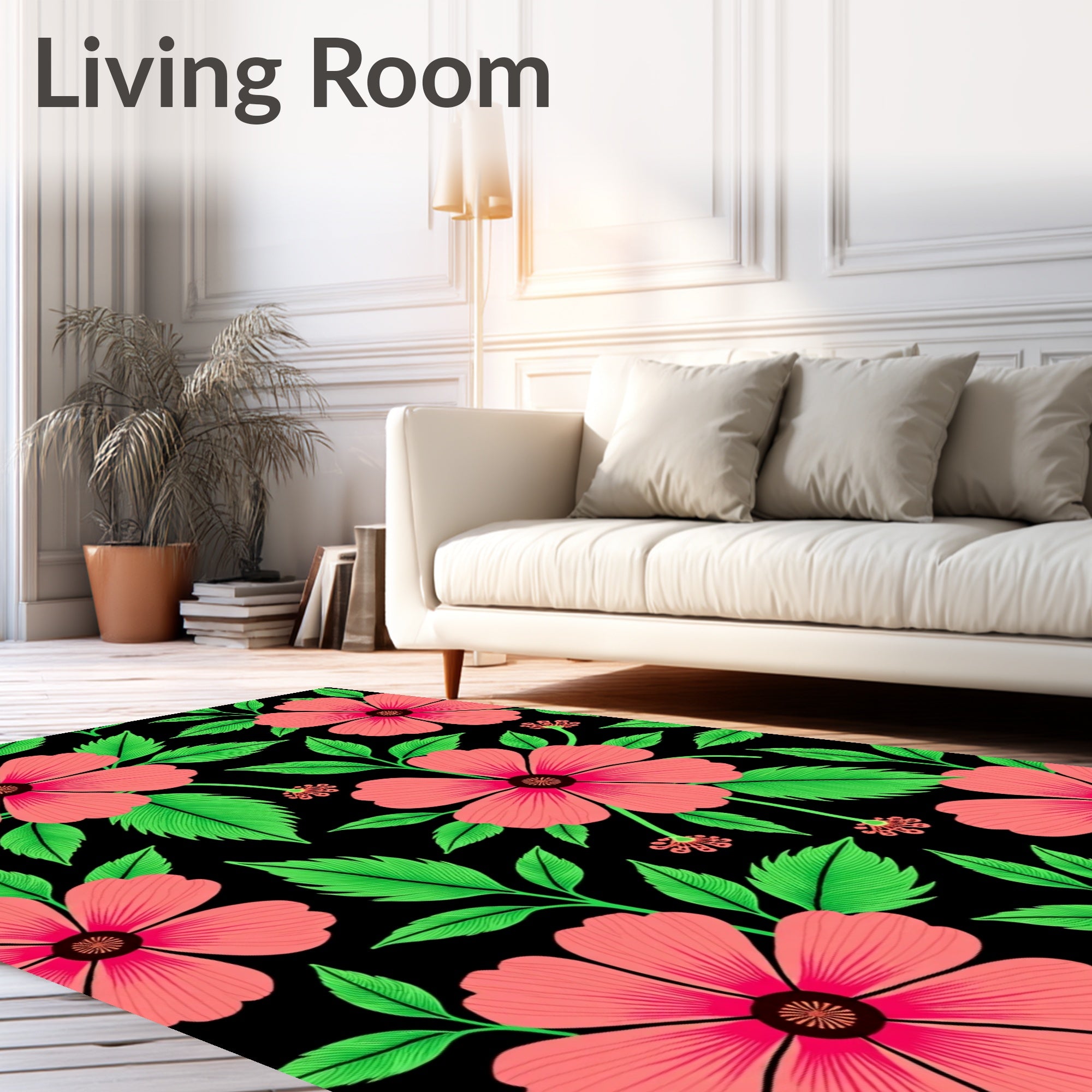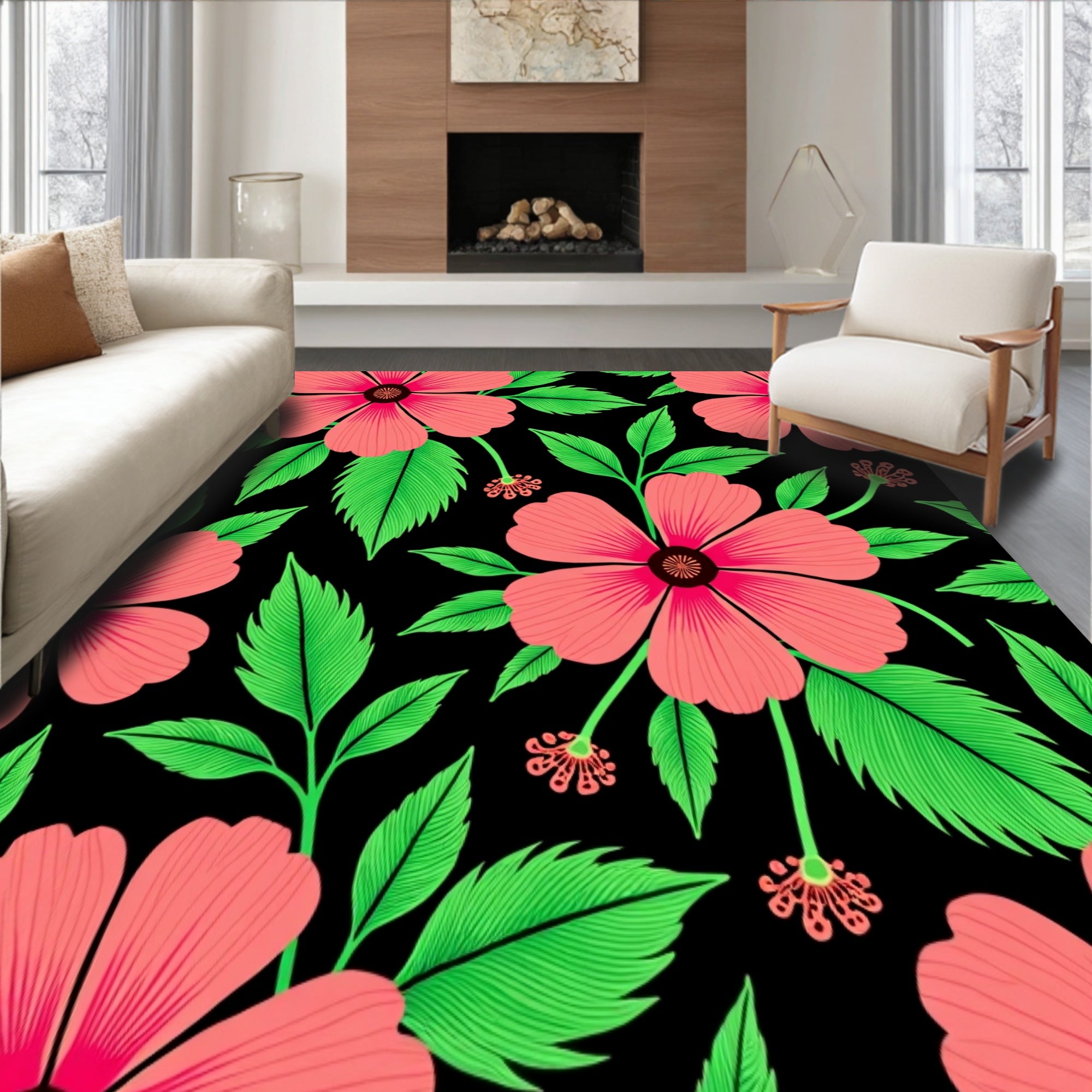 Flatwoven High Traffic Area Rug, Tropical Hibiscus with Exotic Botanical Illustrations, Non Slip, Stain Resistant, Washable Area Rugs for Living Room, Bedroom (Pink) Overview: