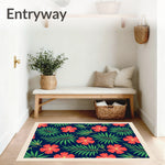 Flatwoven High Traffic Area Rug, Tropical Jungle Bloom with Exotic Foliage, Non Slip, Stain Resistant, Washable Area Rugs for Living Room, Bedroom (Blue) Overview: