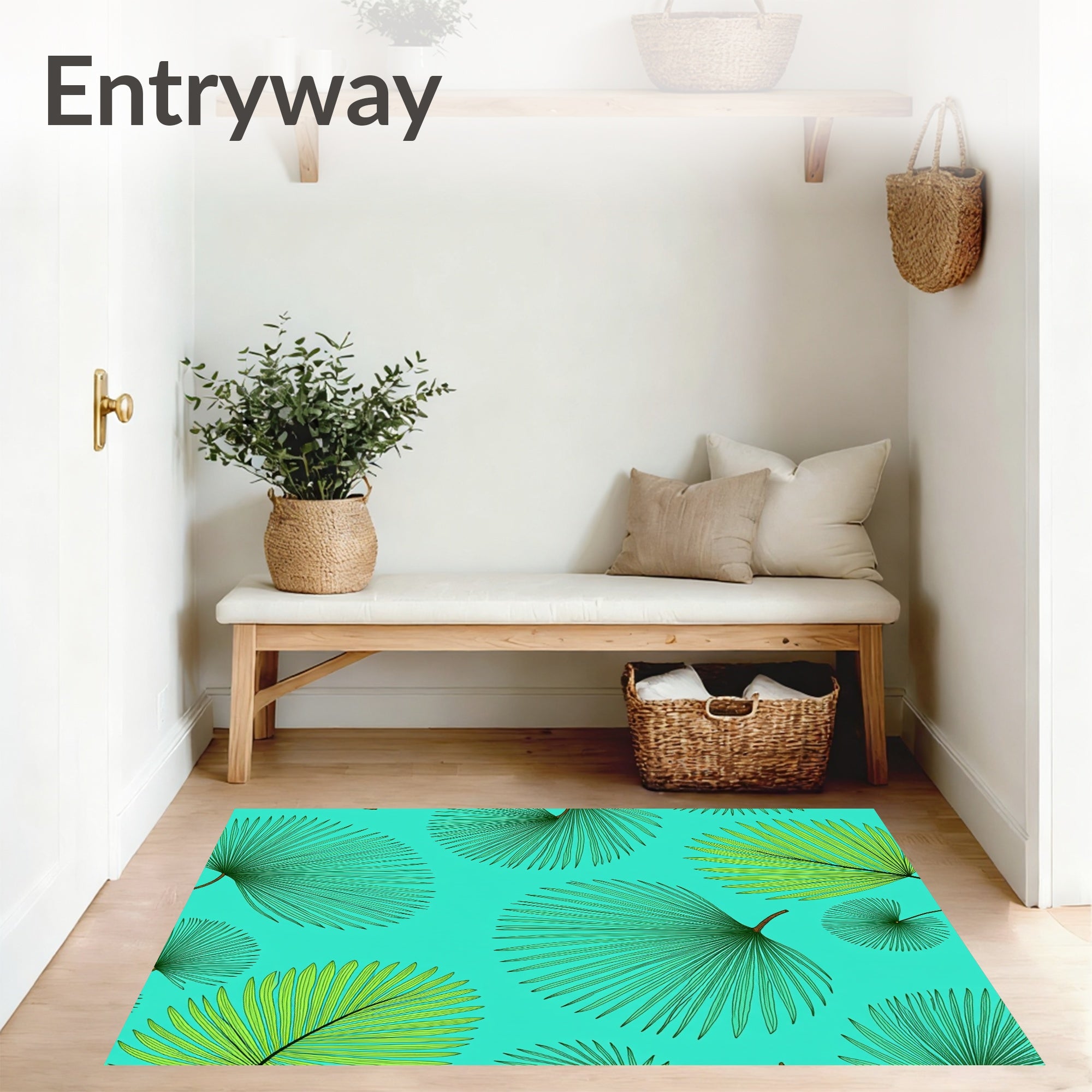 Tropical Palm Frond Botanical Design Floor Accent (Green)