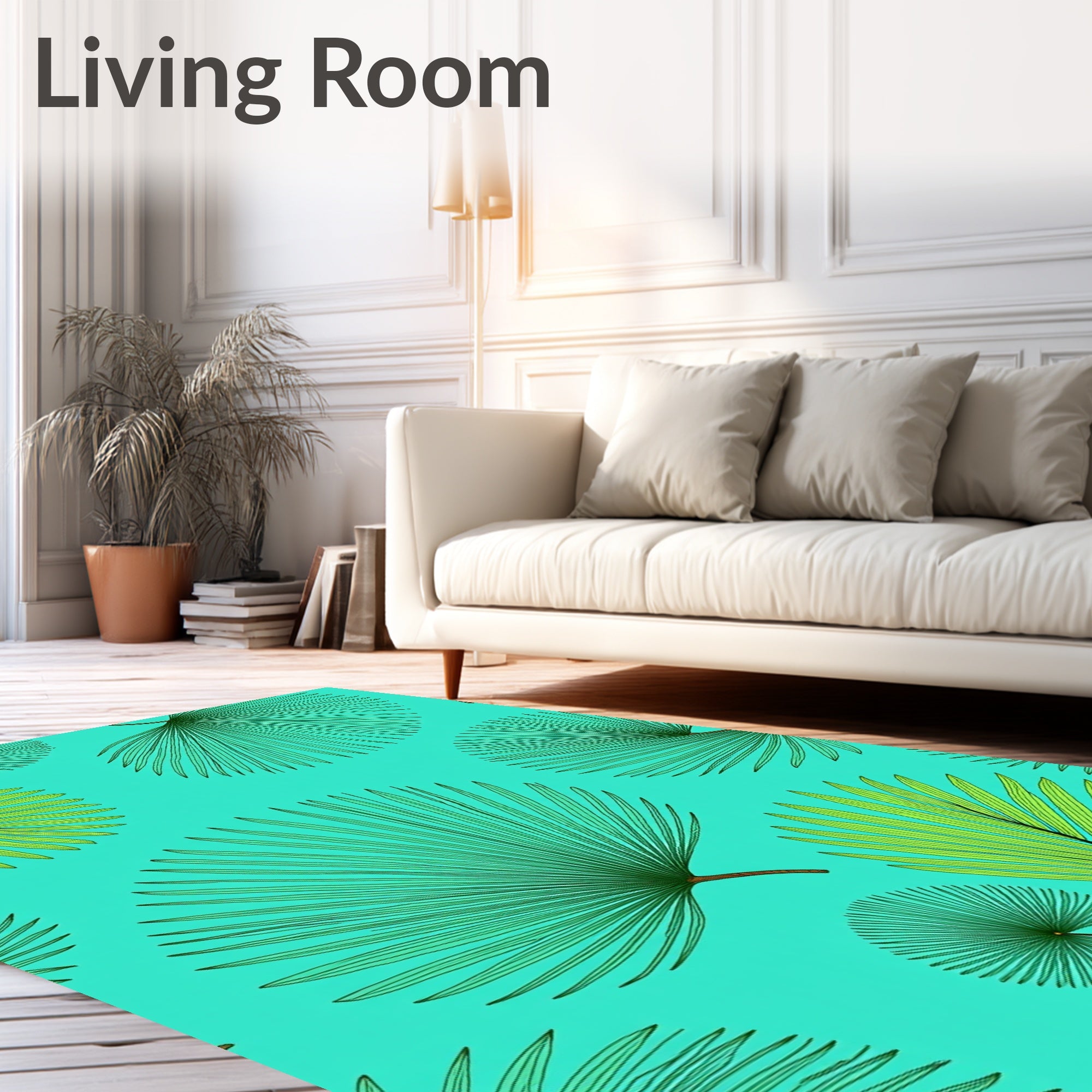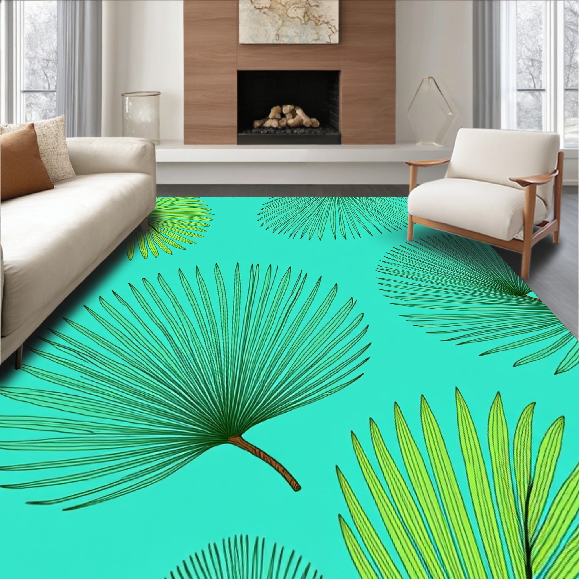 Flatwoven High Traffic Area Rug, Tropical Palm Frond Botanical Design Floor Accent, Non Slip, Stain Resistant, Washable Area Rugs for Living Room, Bedroom (Green) Overview: