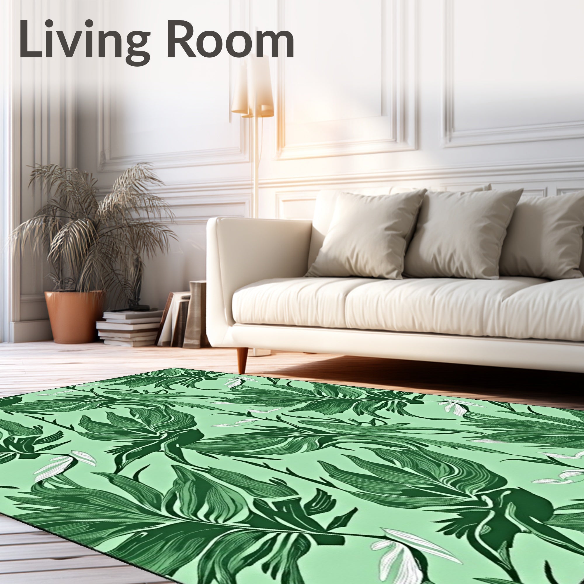 Flatwoven High Traffic Area Rug, Verdant Jungle Exotic Flora Lush Tropical Fantasy, Non Slip, Stain Resistant, Washable Area Rugs for Living Room, Bedroom (Green) Overview: