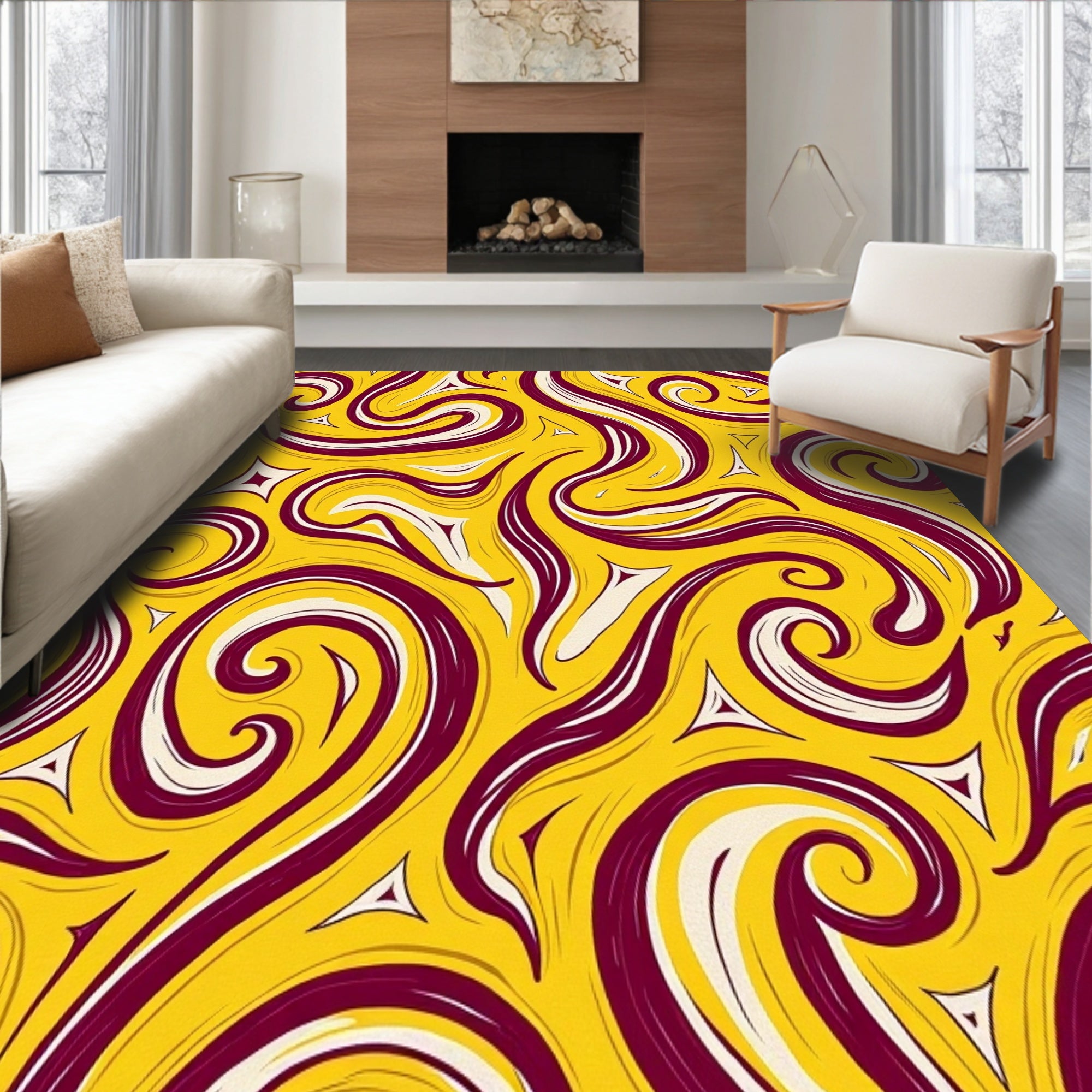 Flatwoven High Traffic Area Rug, Vintage Abstract Swirl Enchanting Distinctive Heritage Treasure, Non Slip, Stain Resistant, Washable Area Rugs for Living Room, Bedroom (Yellow) Overview: