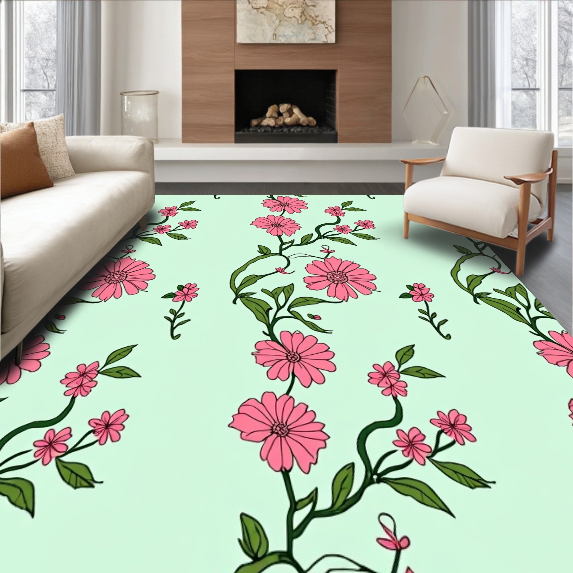 Flatwoven High Traffic Area Rug, Vintage Blooming Garden Tapestry Floral Medallion Artistic, Non Slip, Stain Resistant, Washable Area Rugs for Living Room, Bedroom (Pink) Overview: