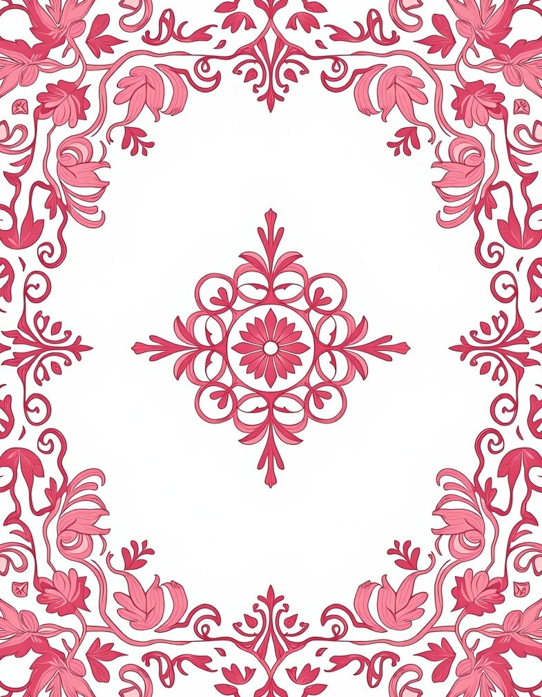 Vintage Blossom Medallion With Ornate Botanical Filigree Motifs (Pink)