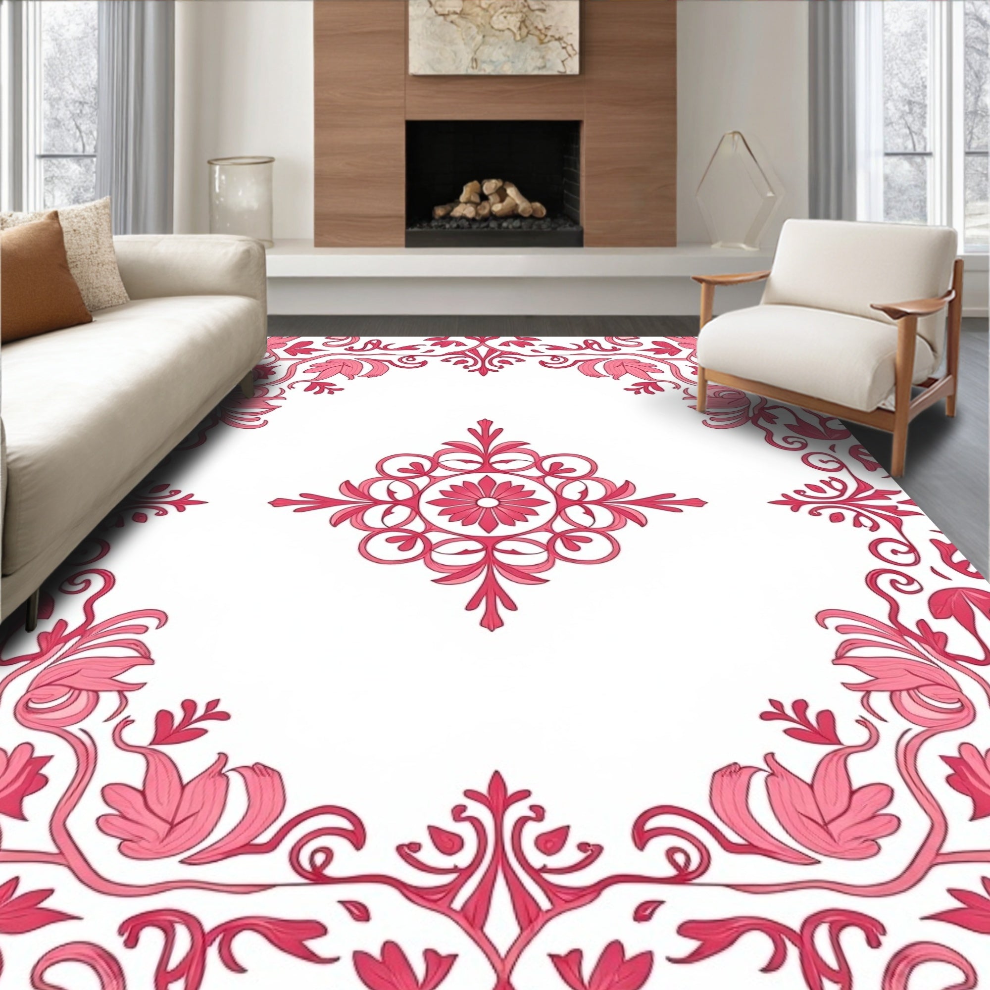 Flatwoven High Traffic Area Rug, Vintage Blossom Medallion With Ornate Botanical Filigree Motifs, Non Slip, Stain Resistant, Washable Area Rugs for Living Room, Bedroom (Pink) Overview: