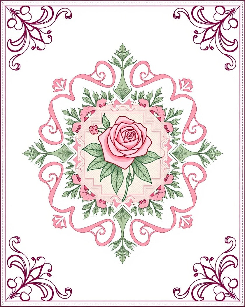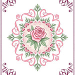 Vintage Blossom Medallion with Ornate Ribbon Motifs and Classic Flourishes (Pink)