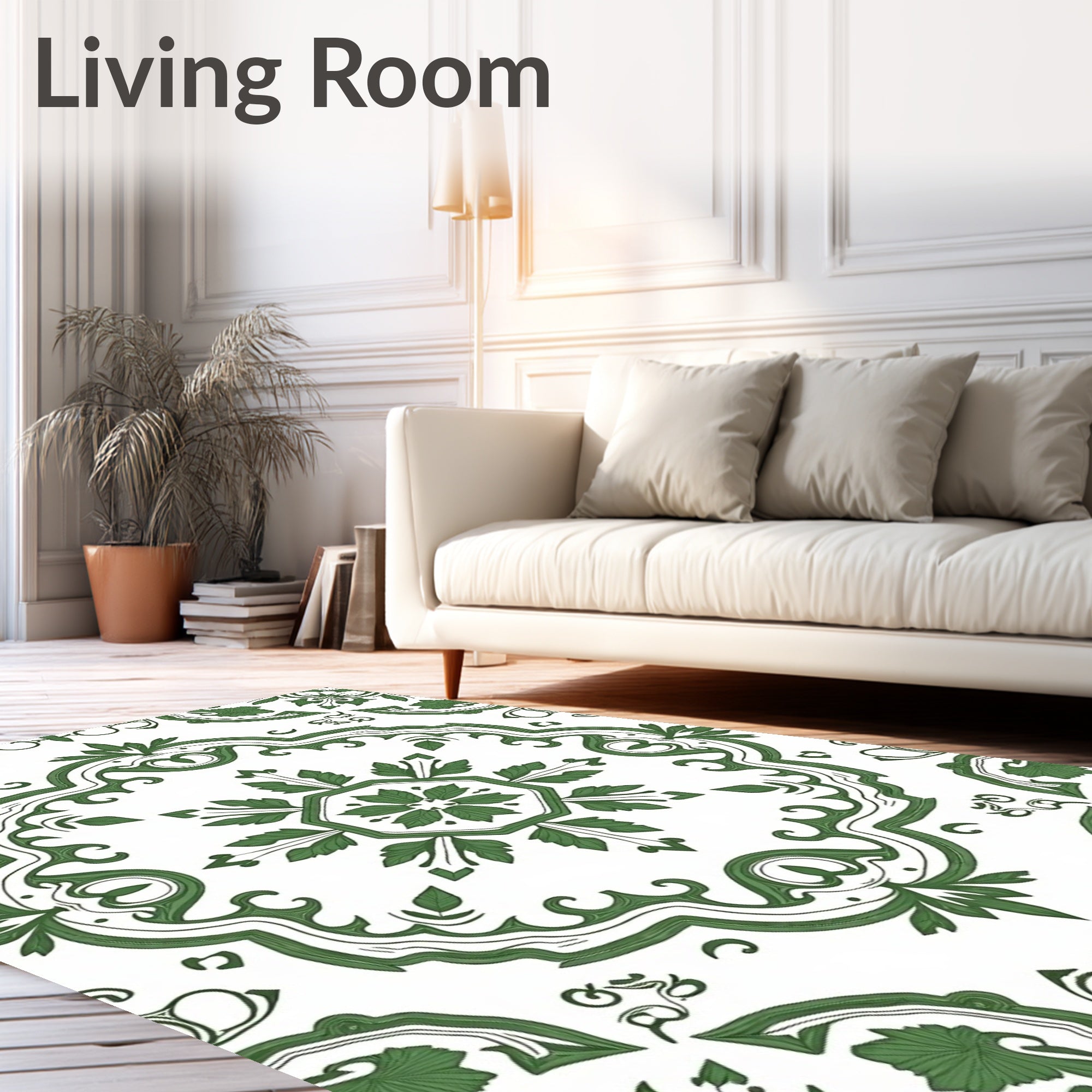 Flatwoven High Traffic Area Rug, Vintage Botanical Artistry Floral Medallion Tapestry, Non Slip, Stain Resistant, Washable Area Rugs for Living Room, Bedroom (Green) Overview: