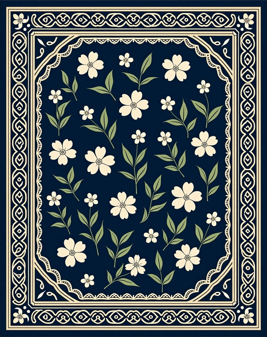 Flatwoven High Traffic Area Rug, Vintage Botanical Blossom, Non Slip, Stain Resistant, Washable Area Rugs for Living Room, Bedroom (Blue) Overview: