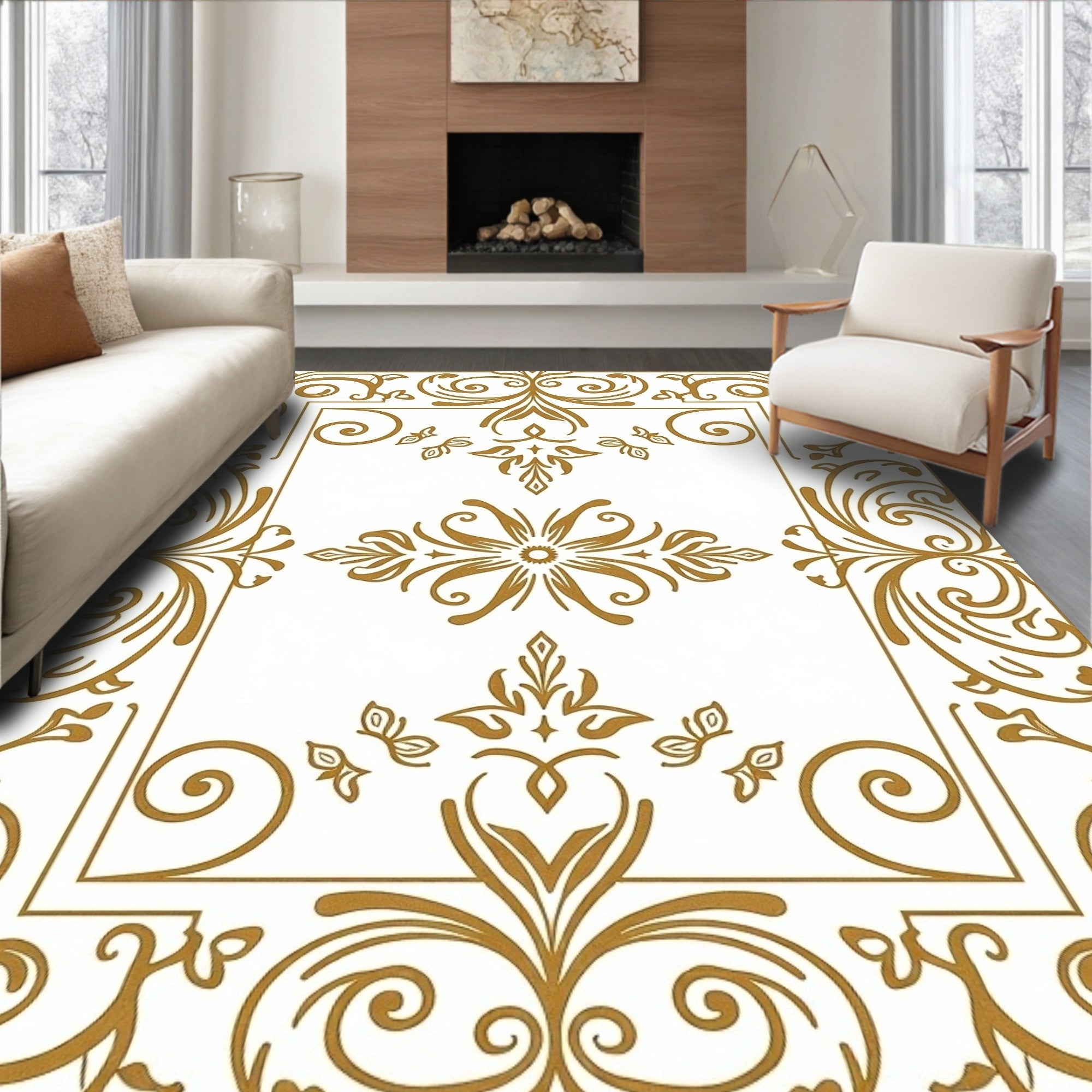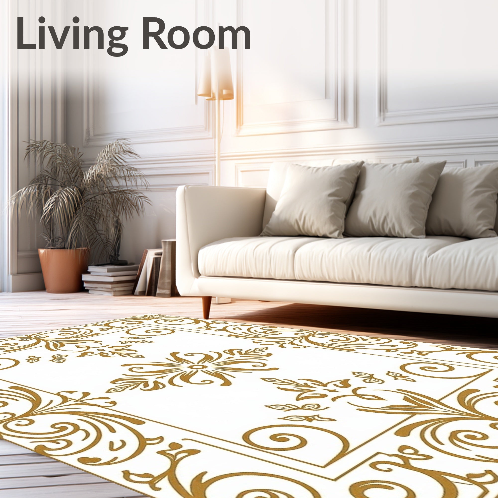 Flatwoven High Traffic Area Rug, Vintage Botanical Swirl Ornate Enchanting Charm, Non Slip, Stain Resistant, Washable Area Rugs for Living Room, Bedroom (Gold) Overview: