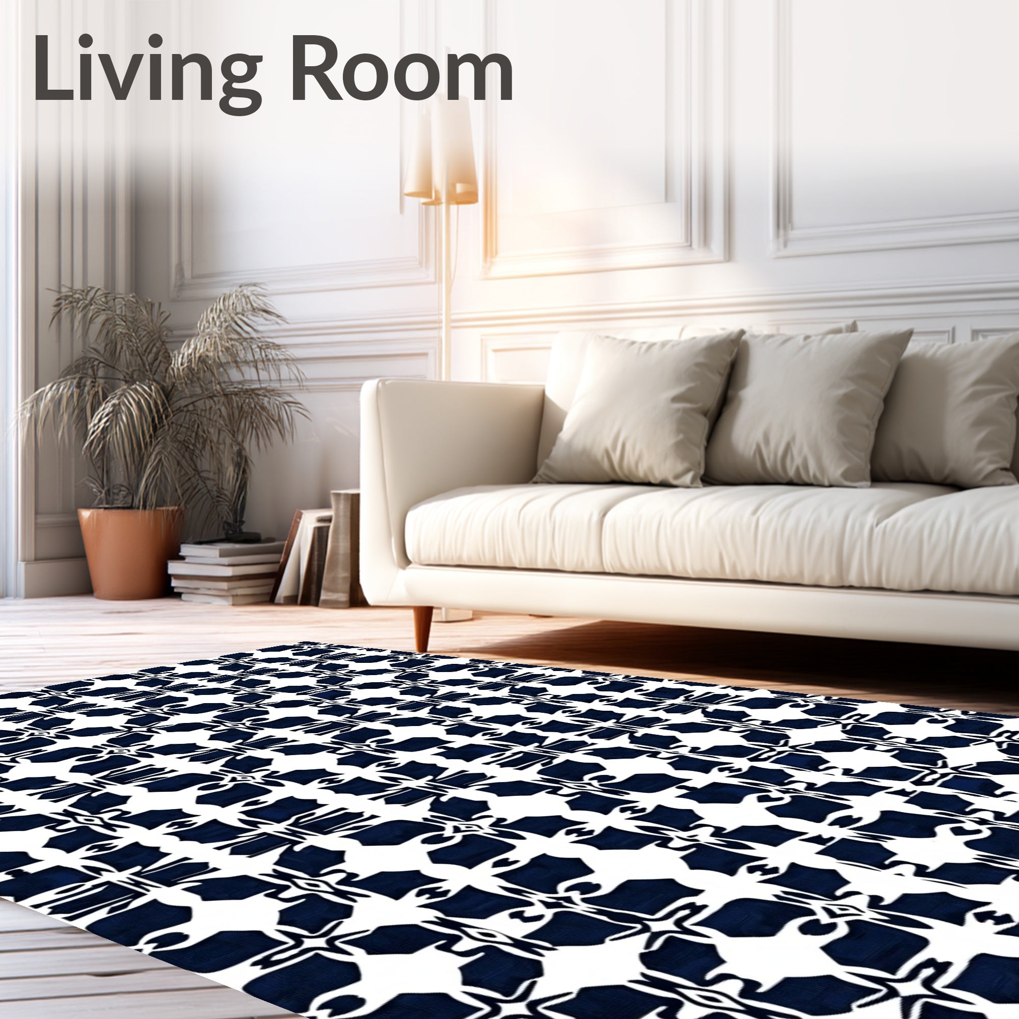 Flatwoven High Traffic Area Rug, Vintage Checkerboard Heritage Lattice Timeless, Non Slip, Stain Resistant, Washable Area Rugs for Living Room, Bedroom (Blue) Overview: