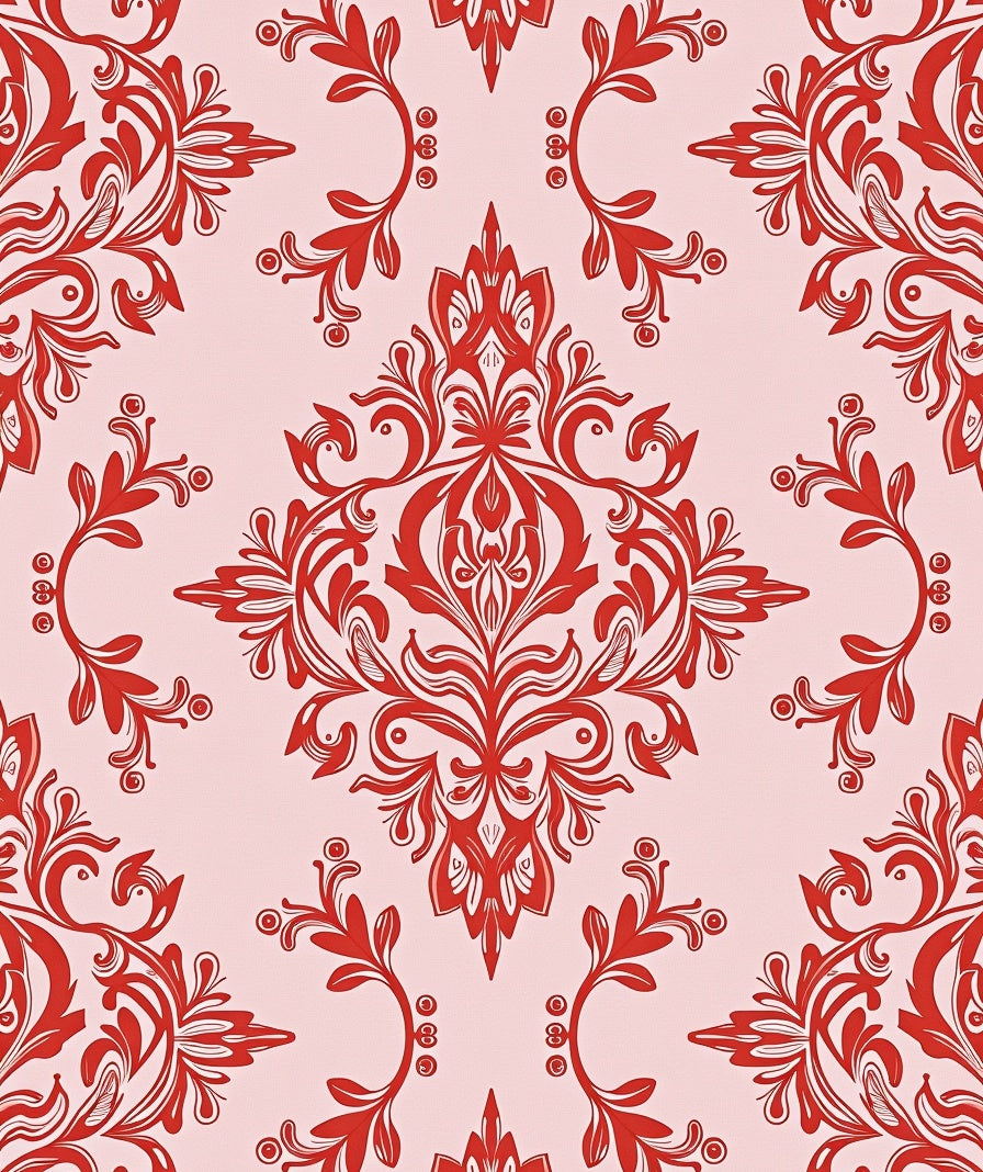 Drawing inspiration from the opulent textile heritage of the Parisian Grand Siècle and the romantic maximalism of the Victorian era, this design reimagines the hallowed damask for the contemporary curator. Curving acanthus leaves and ceremonial scrolls unfurl across a powder-pink field like ink on a love letter, where blood-red pigments meet sun-drenched softness. This is a visual ode stretching from the intricate botanical illustrations of the Rococo movement to the bold, Graphic-Baroque revival currently sweeping North American interiors. When placed in a room, the atmosphere undergoes a hushed metamorphosis; sharp angles of modern furniture are softened, and the floor becomes a tableau of dramatic intimacy. It is crafted for the heart-led homebuilder—the seeker of slow joy who believes that even the most functional objects should possess a soul. Stepping onto this rug isn’t just a movement through a room; it is an arrival. Don’t just fill your space—anchor it in beauty. This is not a rug; it is a declaration of romantic living.