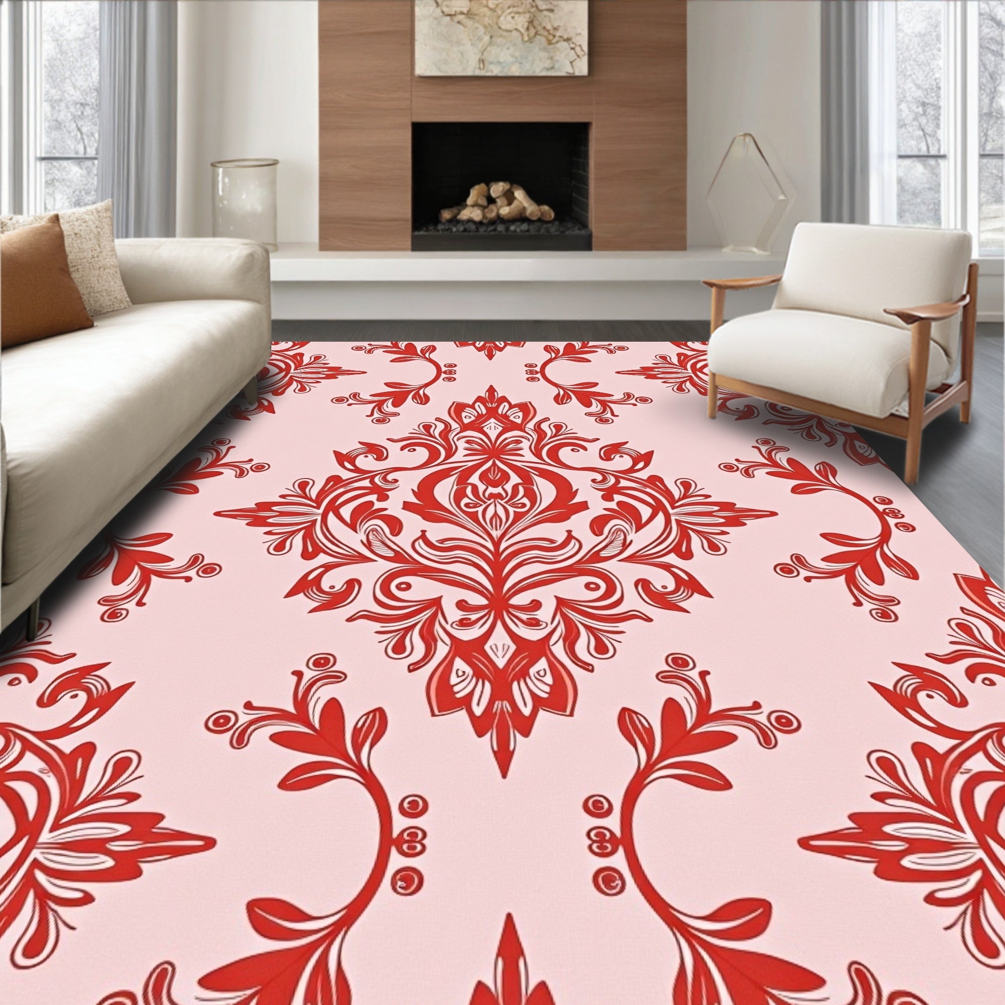 Elevate your space with the Crimson Floral Damask Scroll Rug, a stunning marriage of classic elegance and functional design. This vintage-inspired area rug features an intricate crimson damask pattern set against a soft, muted pink backdrop, making it an ideal focal point for a refined living room or bedroom. Engineered to withstand the demands of a busy home, the low-pile construction is exceptionally durable and stays beautiful over time. Maintenance is effortless, as this piece is fully machine washable and designed to fit perfectly under doors. With an OEKO-TEX Standard 100 certification, you can enjoy peace of mind knowing your home sanctuary is safe, stylish, and built for modern longevity.