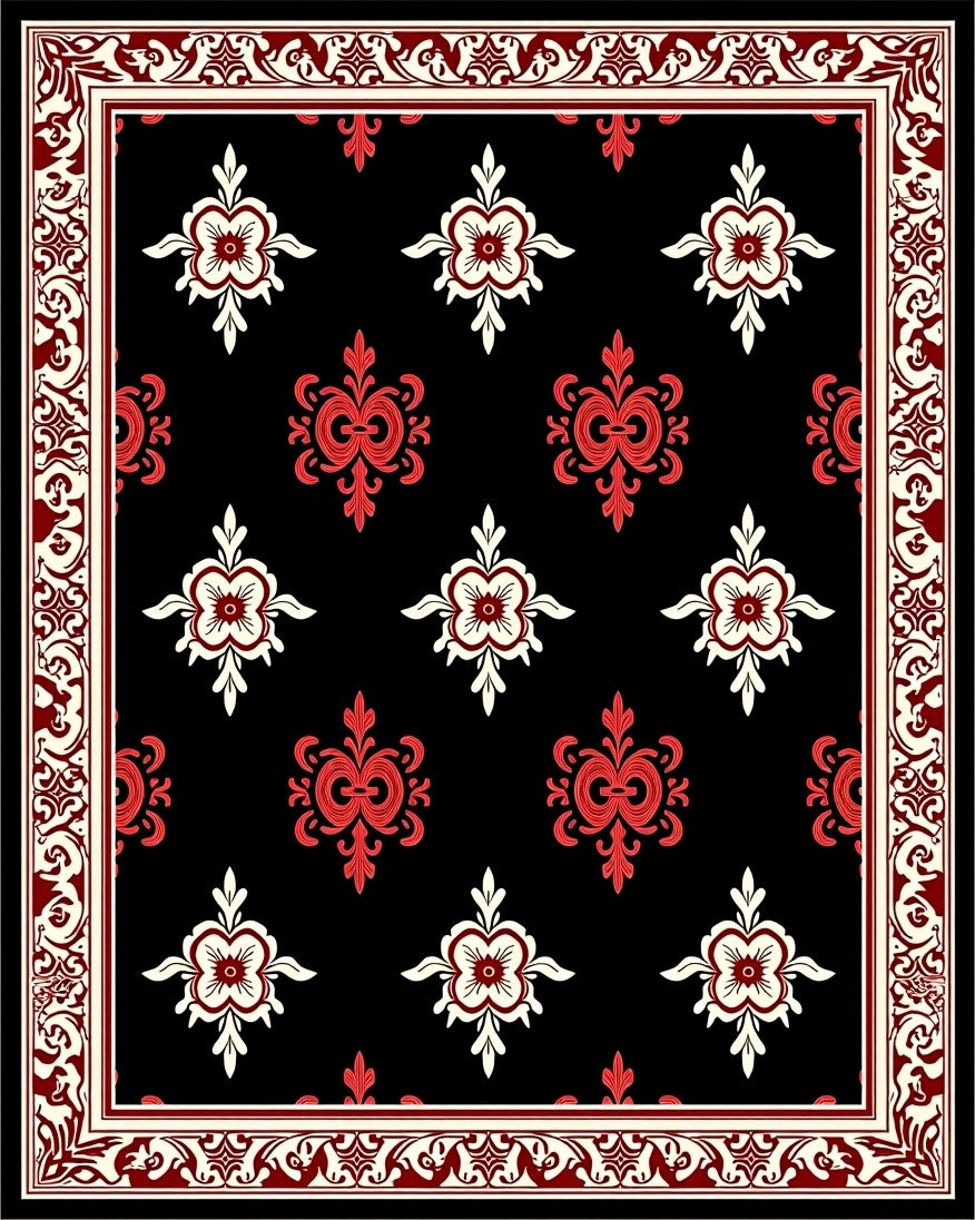Vintage Damask Plush Floor Covering with Baroque (Black)