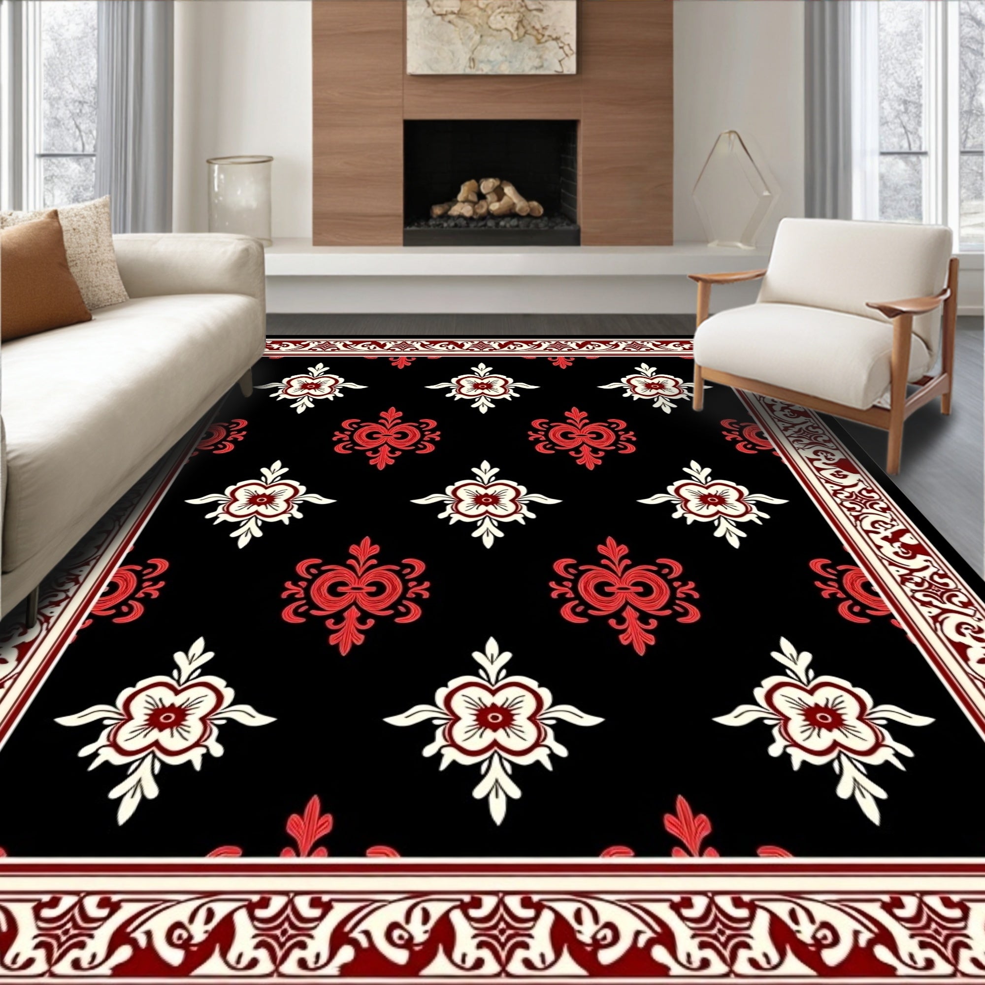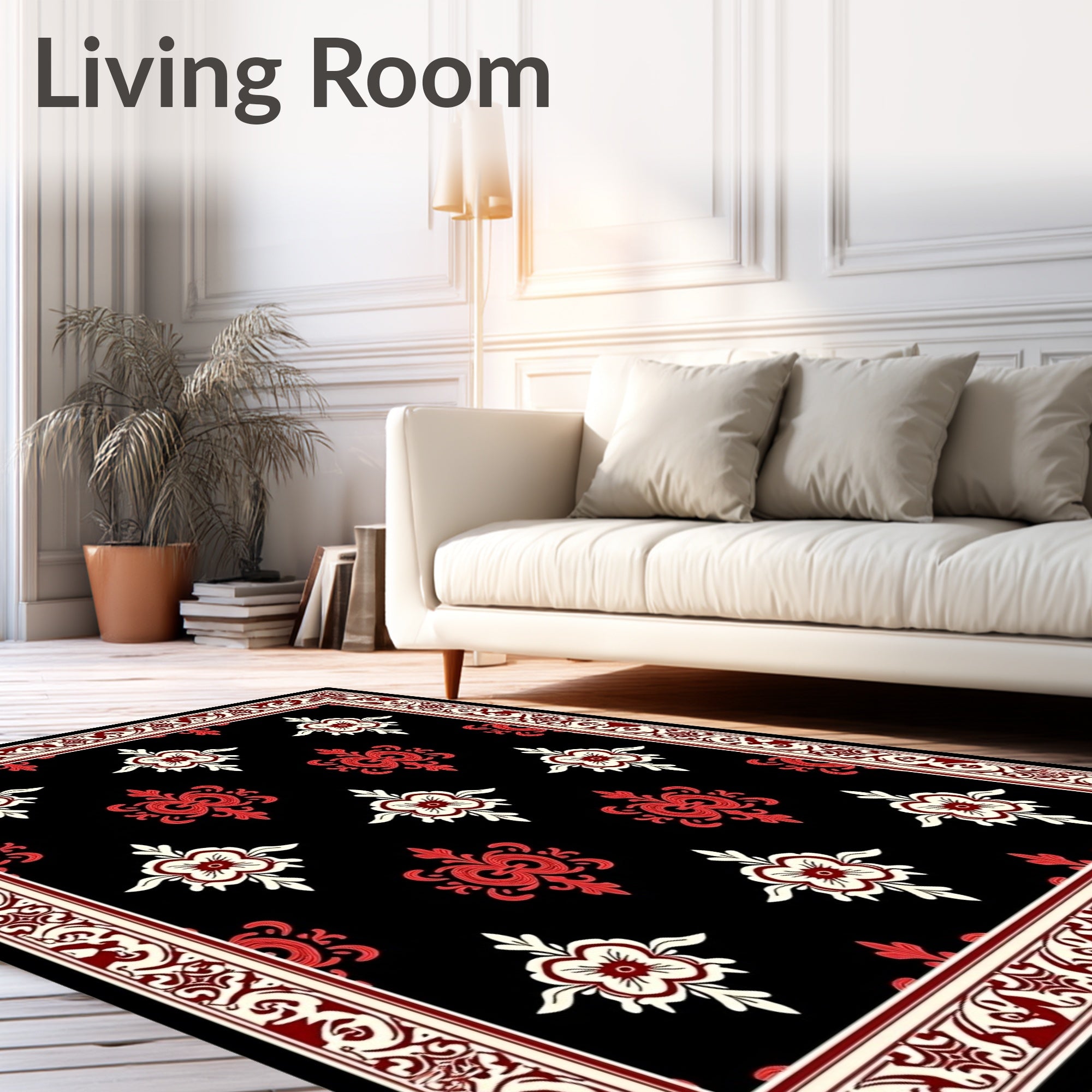 Flatwoven High Traffic Area Rug, Vintage Damask Plush Floor Covering with Baroque, Non Slip, Stain Resistant, Washable Area Rugs for Living Room, Bedroom (Black) Overview: