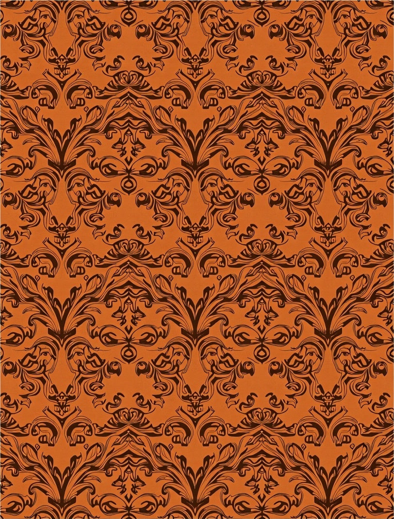 Vintage Damask Scrollwork with Botanical Motifs (Brown)