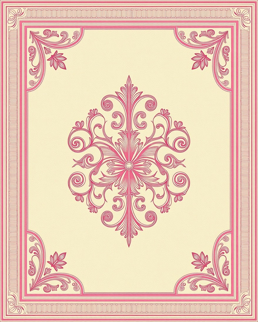 Vintage Distressed Damask with Scrollwork Flourishes (Pink)