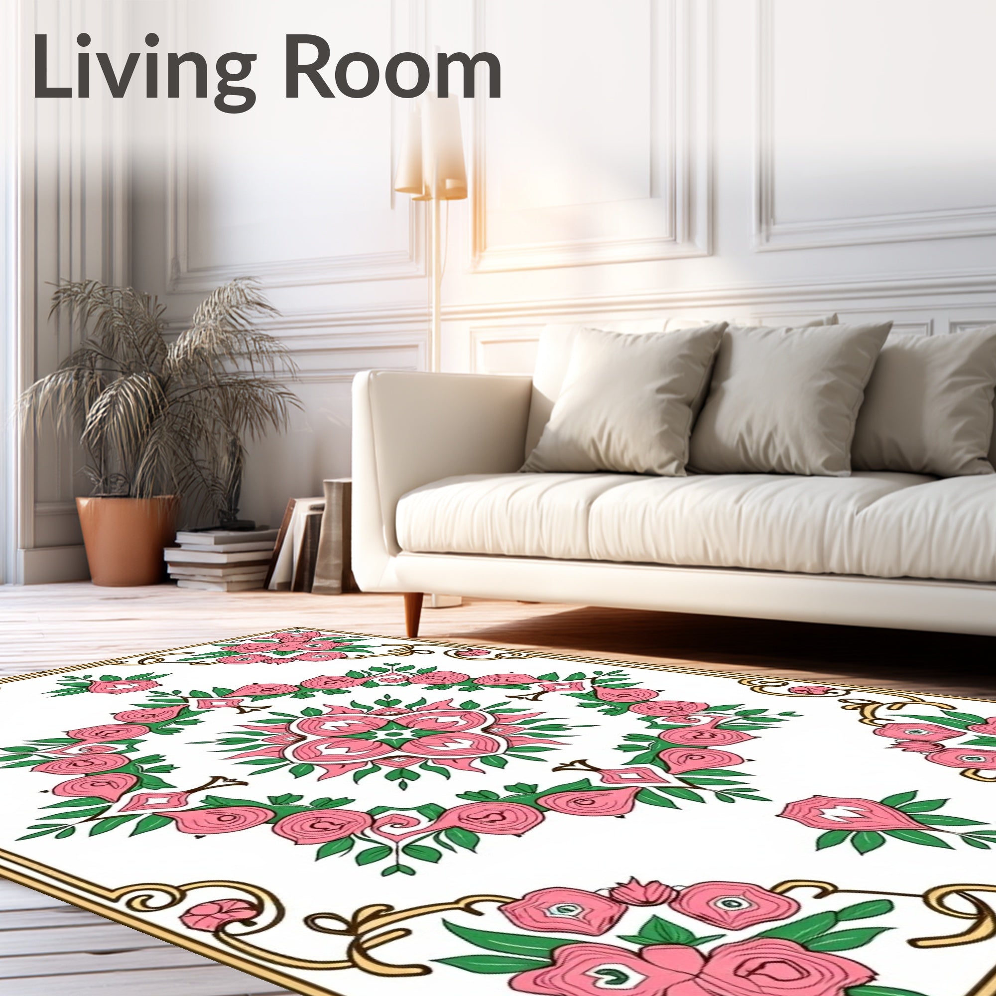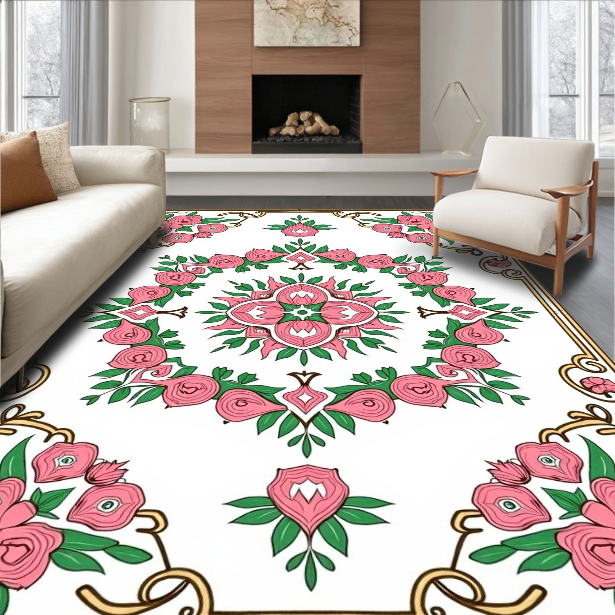 Flatwoven High Traffic Area Rug, Vintage Floral Medallion Tapestry Heritage Artisan Crafted, Non Slip, Stain Resistant, Washable Area Rugs for Living Room, Bedroom (Pink) Overview: