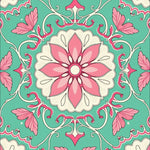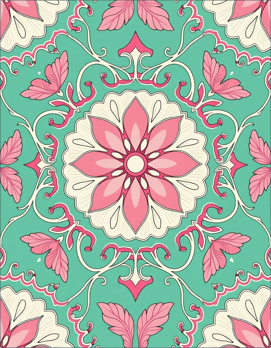 Vintage Floral Medallion with Delicate Petal Motifs and Curved Vines (Pink)