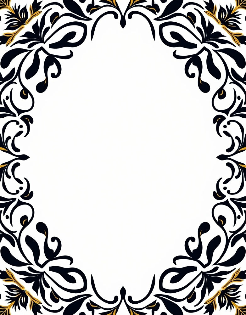 Vintage Inspired Botanical Scrollwork Featuring Leafy Curves (Black)