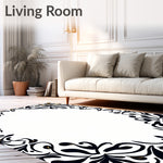 Flatwoven High Traffic Area Rug, Vintage Inspired Botanical Scrollwork Featuring Leafy Curves, Non Slip, Stain Resistant, Washable Area Rugs for Living Room, Bedroom (Black) Overview: