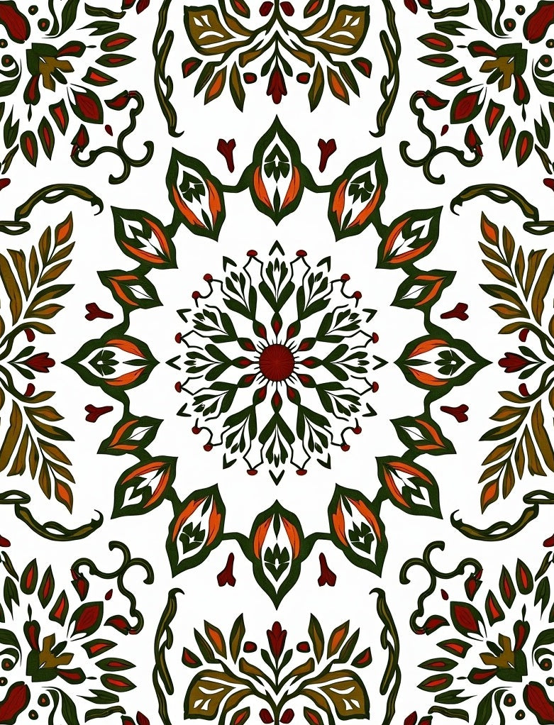 Vintage Inspired Floral Medley With Leafy Accents And Curvilinear Stems (Green)