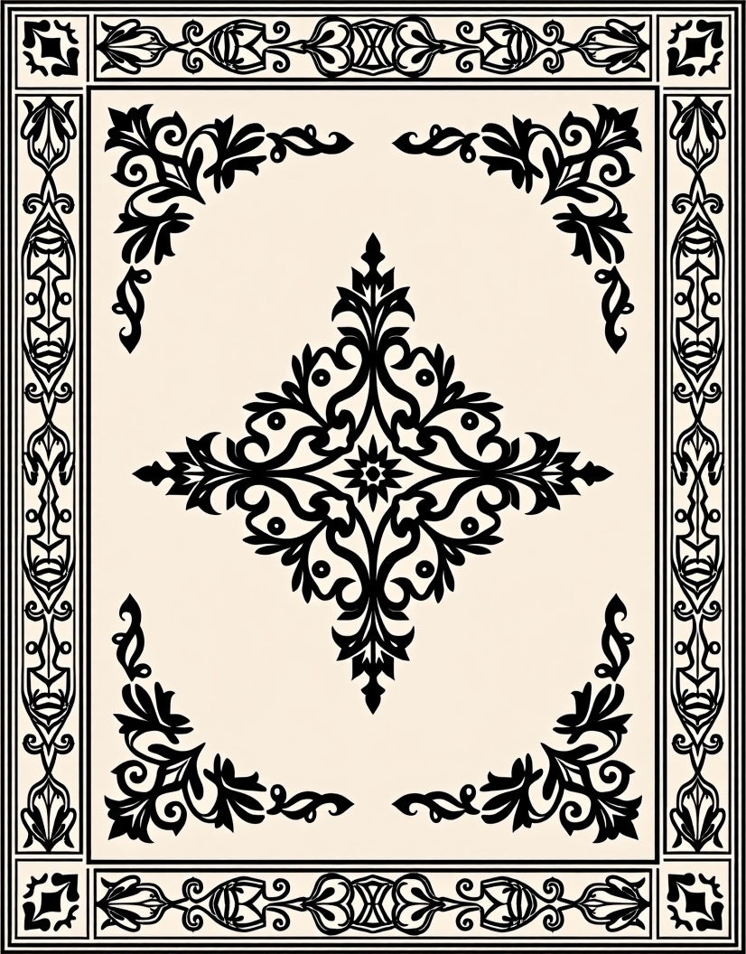 Vintage Medallion Damask Flourish Ornate Classic Elegance (Black)