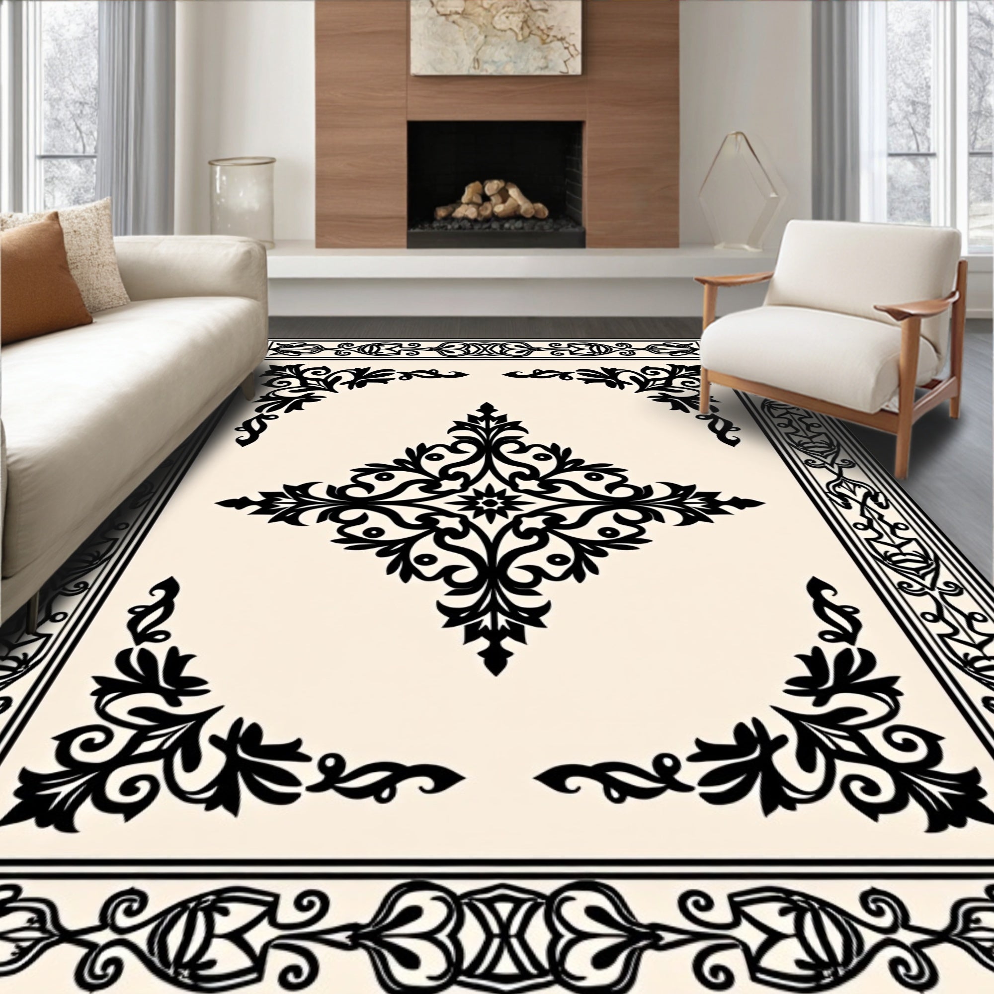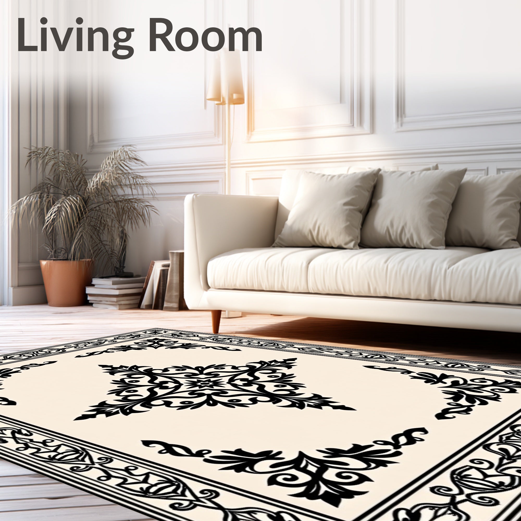 Flatwoven High Traffic Area Rug, Vintage Medallion Damask Flourish Ornate Classic Elegance, Non Slip, Stain Resistant, Washable Area Rugs for Living Room, Bedroom (Black) Overview: