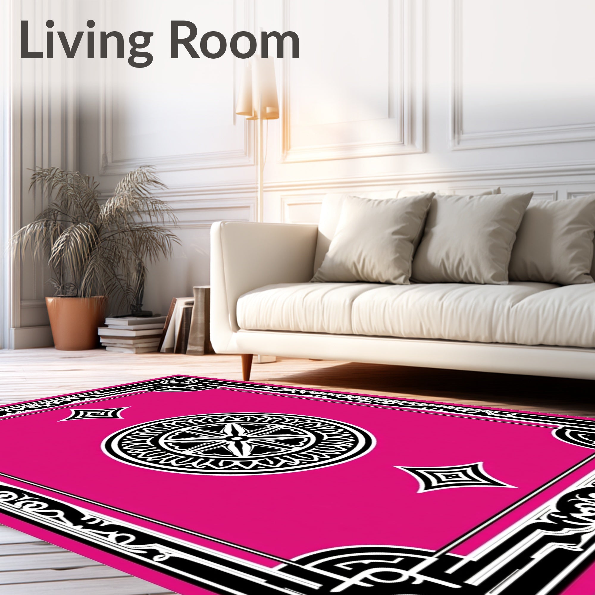 Flatwoven High Traffic Area Rug, Vintage Parquet Medallion Ornamental Tessellation Luxury, Non Slip, Stain Resistant, Washable Area Rugs for Living Room, Bedroom (Pink) Overview:
