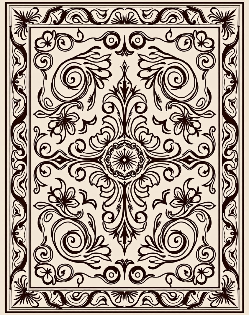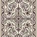 Vintage Swirl Medallion with Ornate Botanical Motifs (Beige)