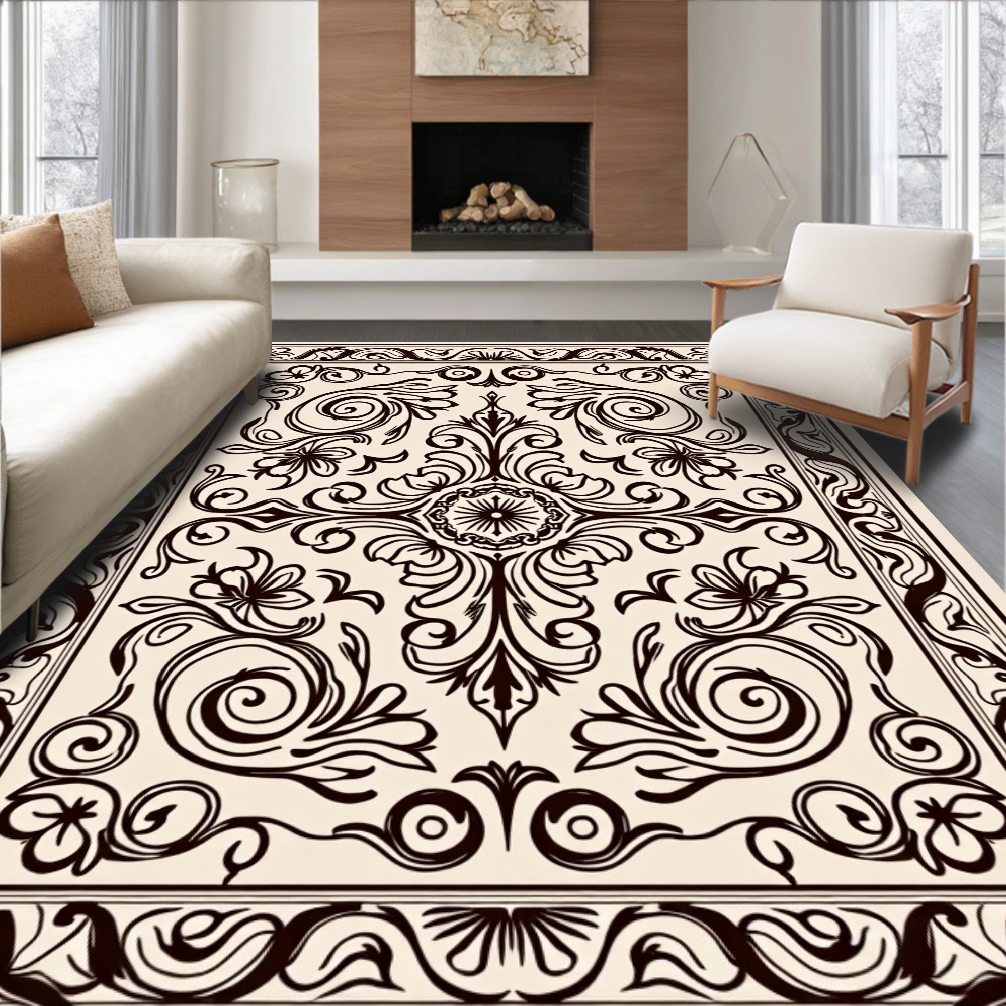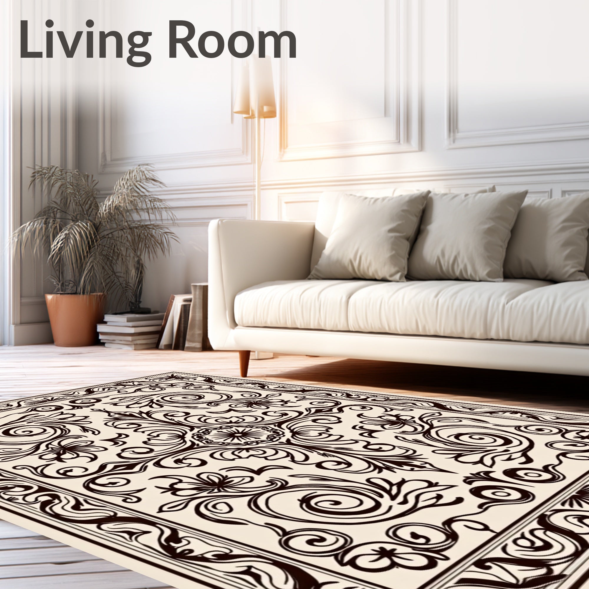 Flatwoven High Traffic Area Rug, Vintage Swirl Medallion with Ornate Botanical Motifs, Non Slip, Stain Resistant, Washable Area Rugs for Living Room, Bedroom (Beige) Overview: