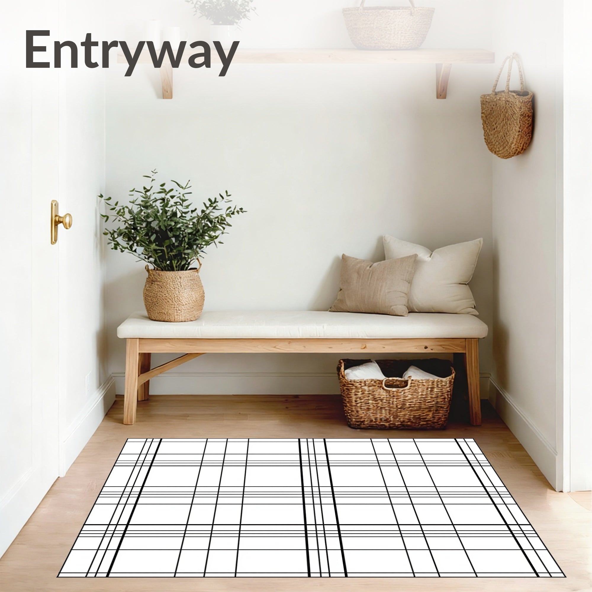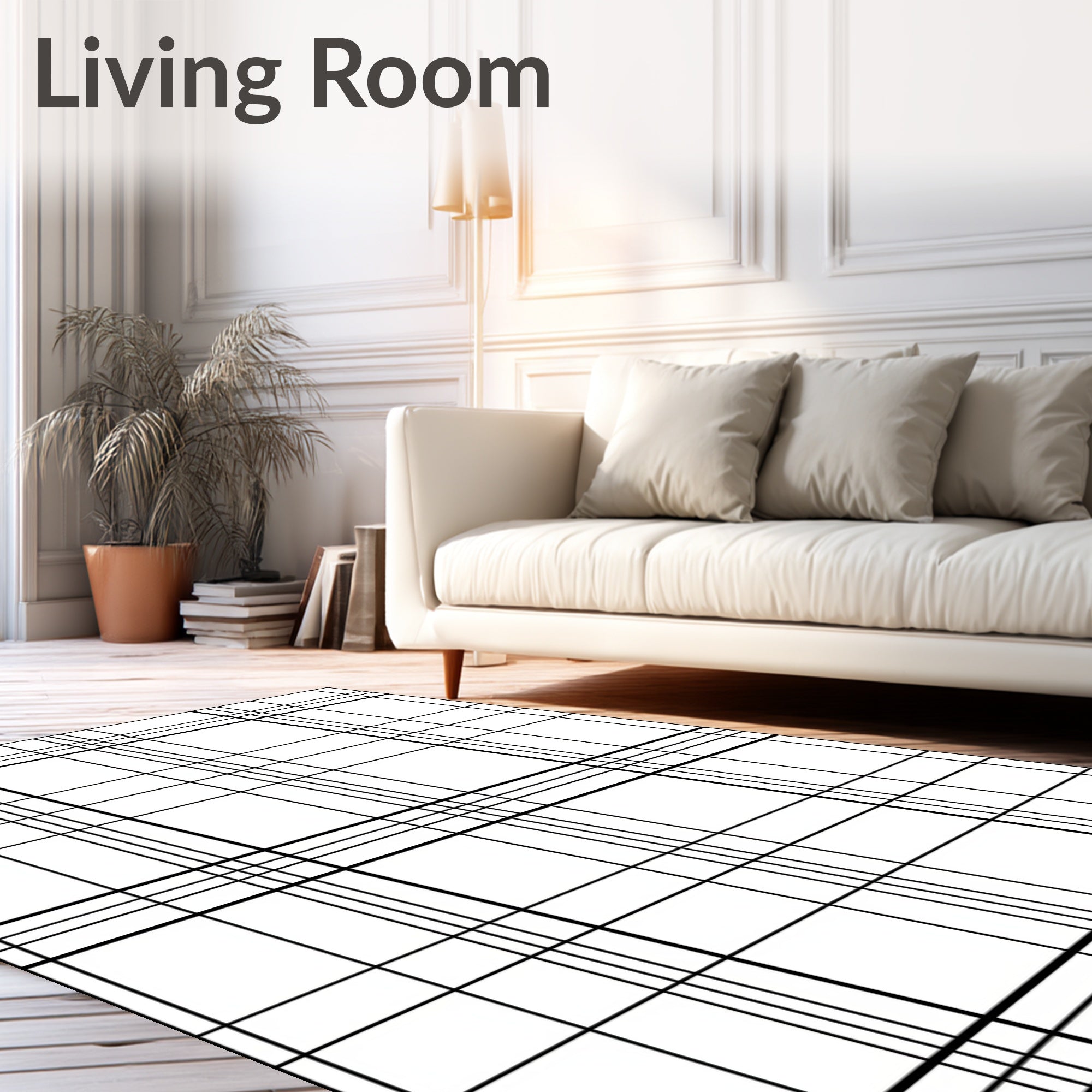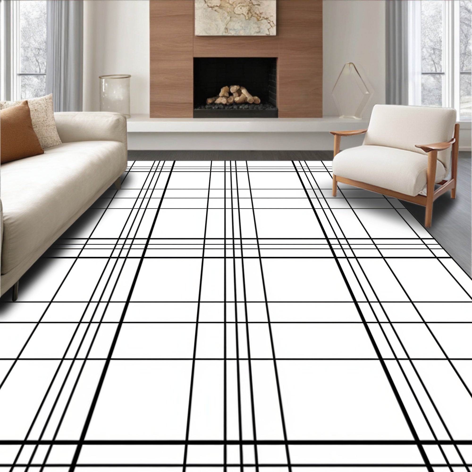 Flatwoven High Traffic Area Rug, Vintage Tartan Windowpane Plaid Art Motif, Non Slip, Stain Resistant, Washable Area Rugs for Living Room, Bedroom (Black) Overview: