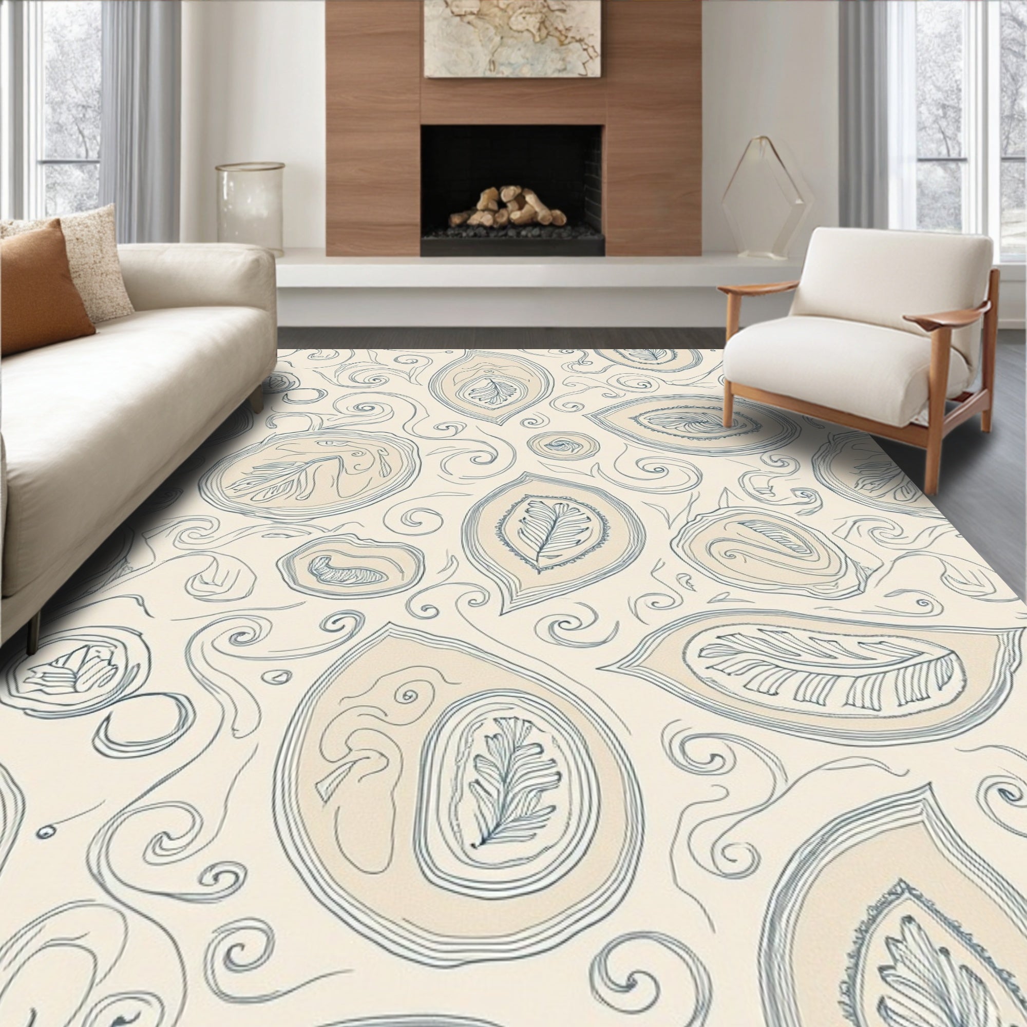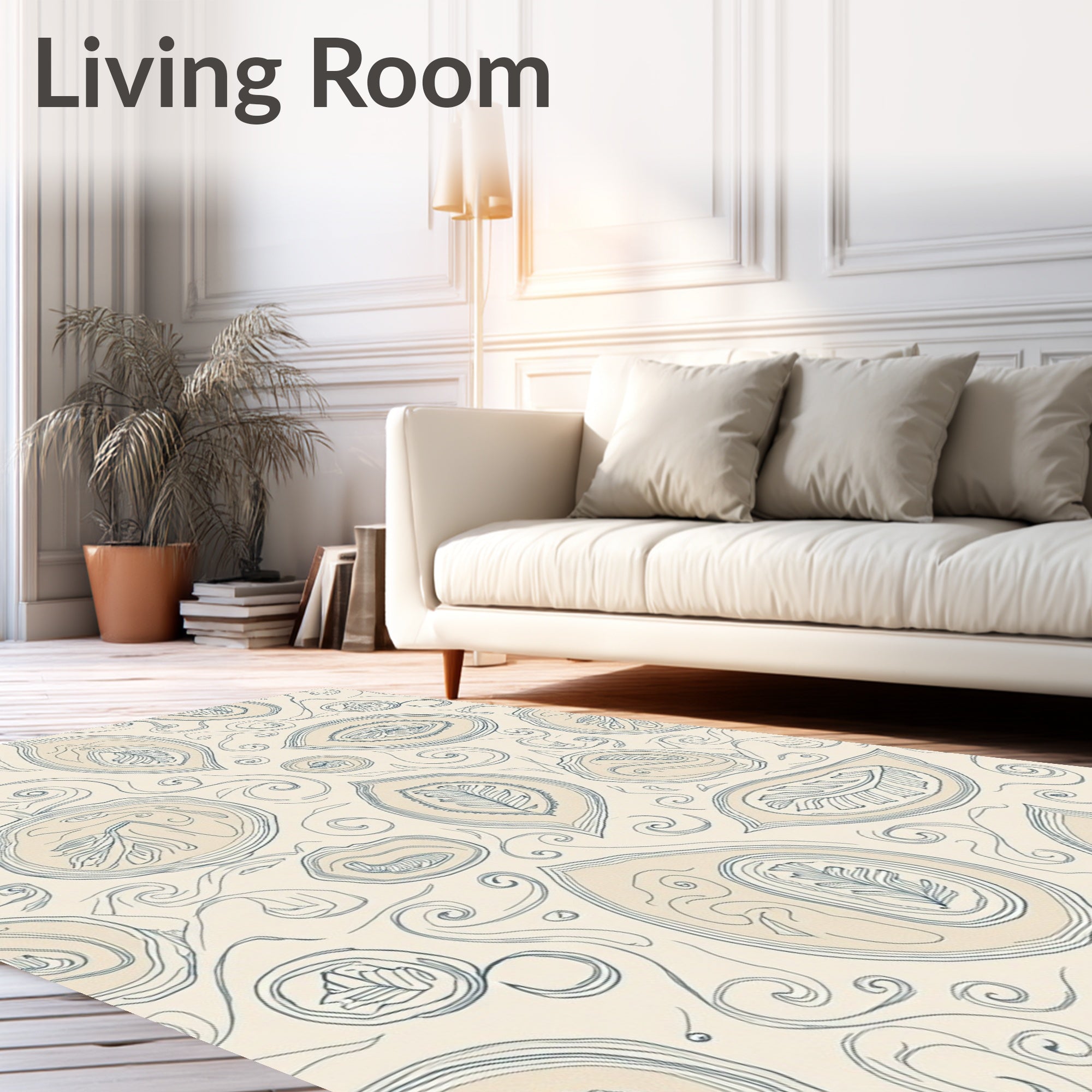 Flatwoven High Traffic Area Rug, Waterproof Paisley Scroll Design, Non Slip, Stain Resistant, Washable Area Rugs for Living Room, Bedroom (Beige) Overview: