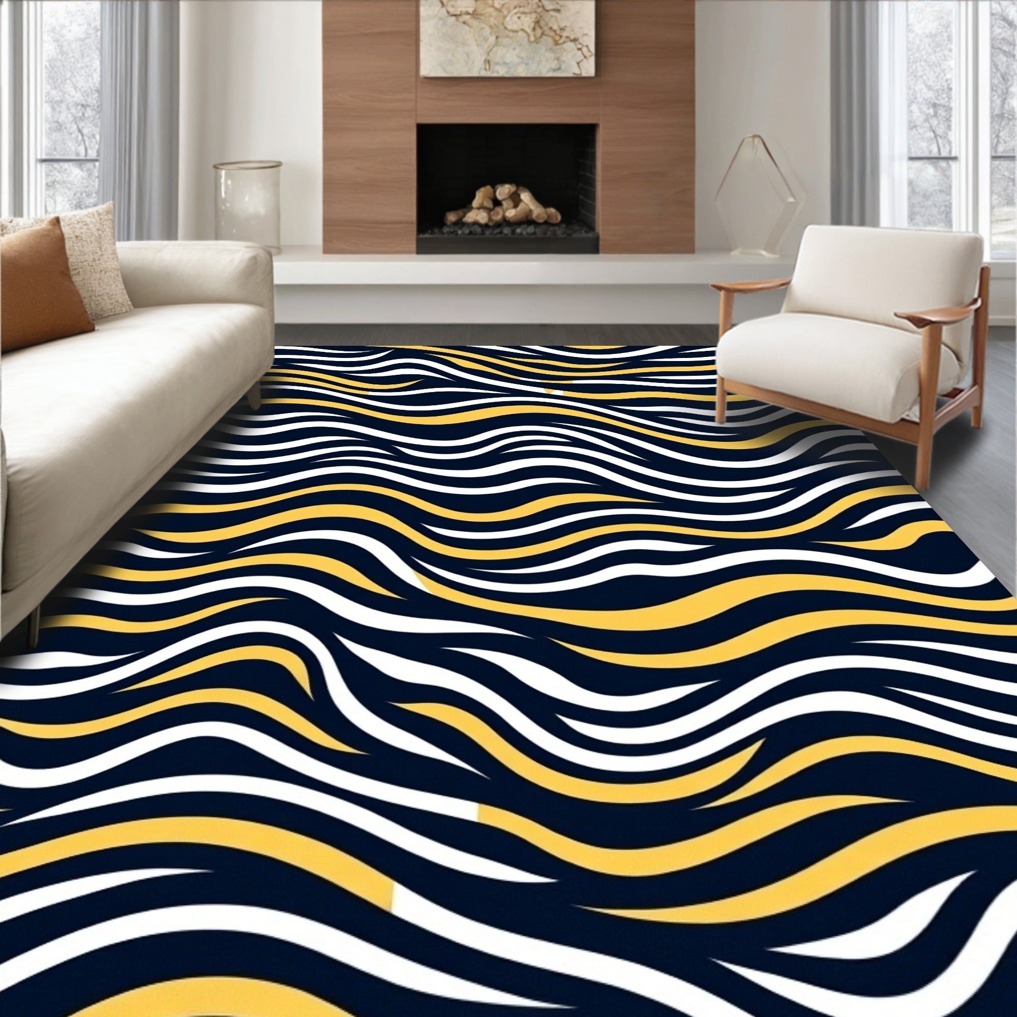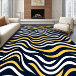 Flatwoven High Traffic Area Rug, Wavy Undulating Curved Swirl Artistic Dynamic Flow Arrangement, Non Slip, Stain Resistant, Washable Area Rugs for Living Room, Bedroom (Blue) Overview: