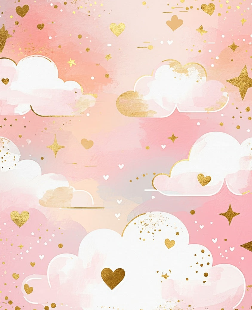 Whimsical Cloudscape with Floating Stars and Gentle Motifs (Pink)