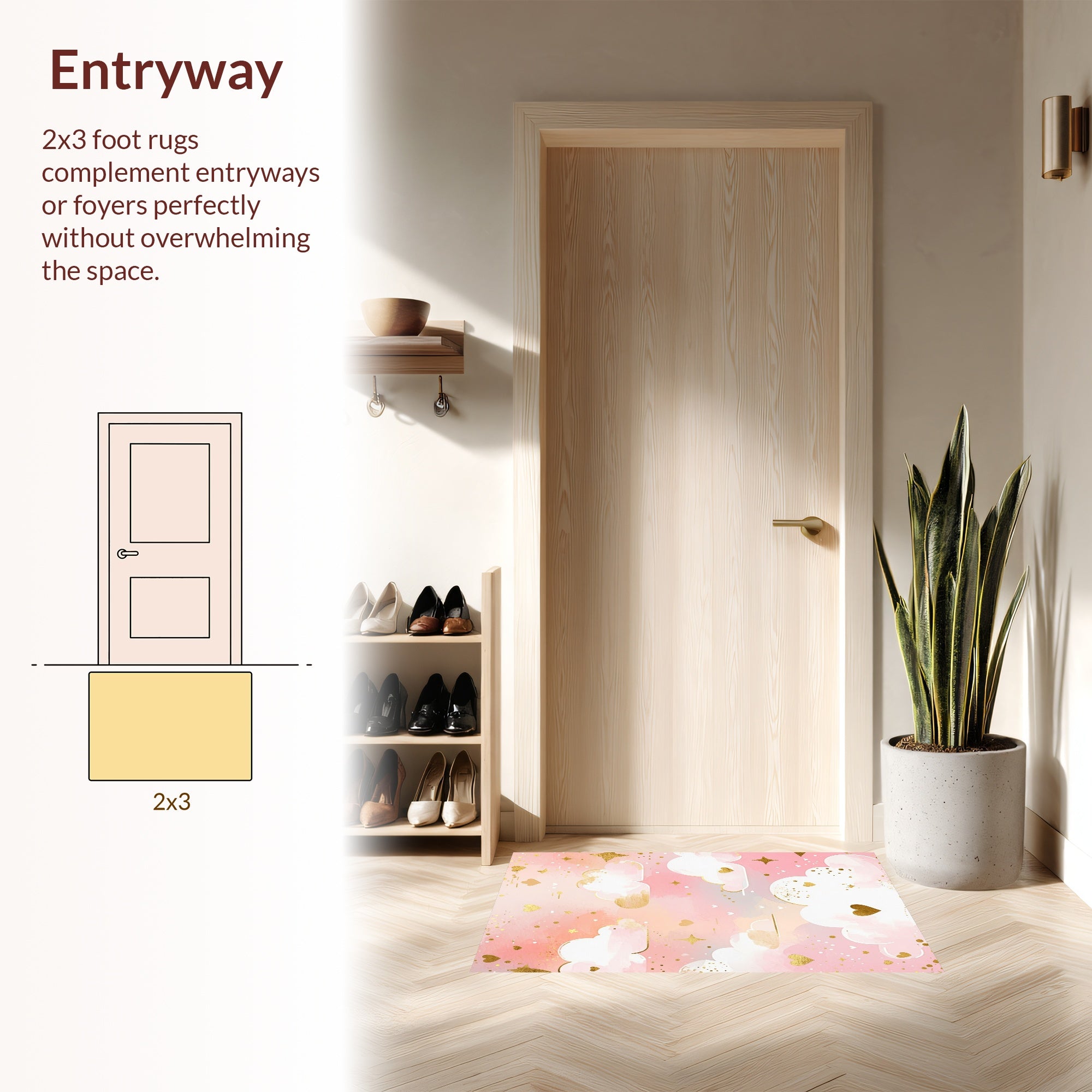 Flatwoven High Traffic Area Rug, Whimsical Cloudscape with Floating Stars and Gentle Motifs, Non Slip, Stain Resistant, Washable Area Rugs for Living Room, Bedroom (Pink) Overview: