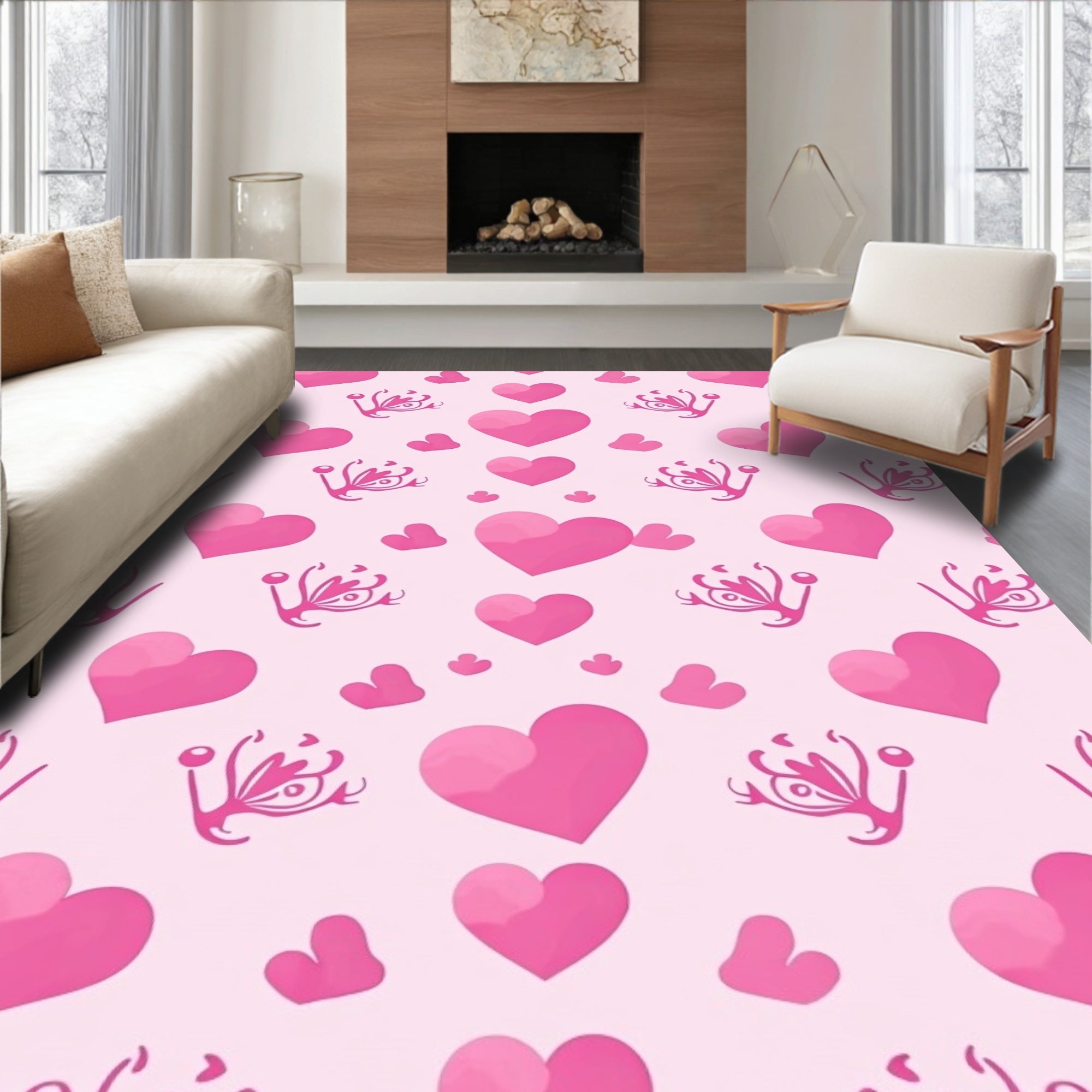 Flatwoven High Traffic Area Rug, Whimsical Cluster with Gradient Bloom Effects, Non Slip, Stain Resistant, Washable Area Rugs for Living Room, Bedroom (Pink) Overview: