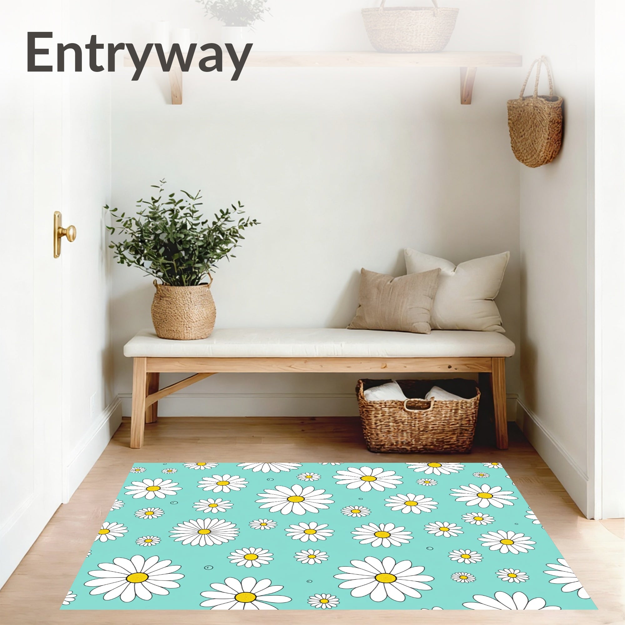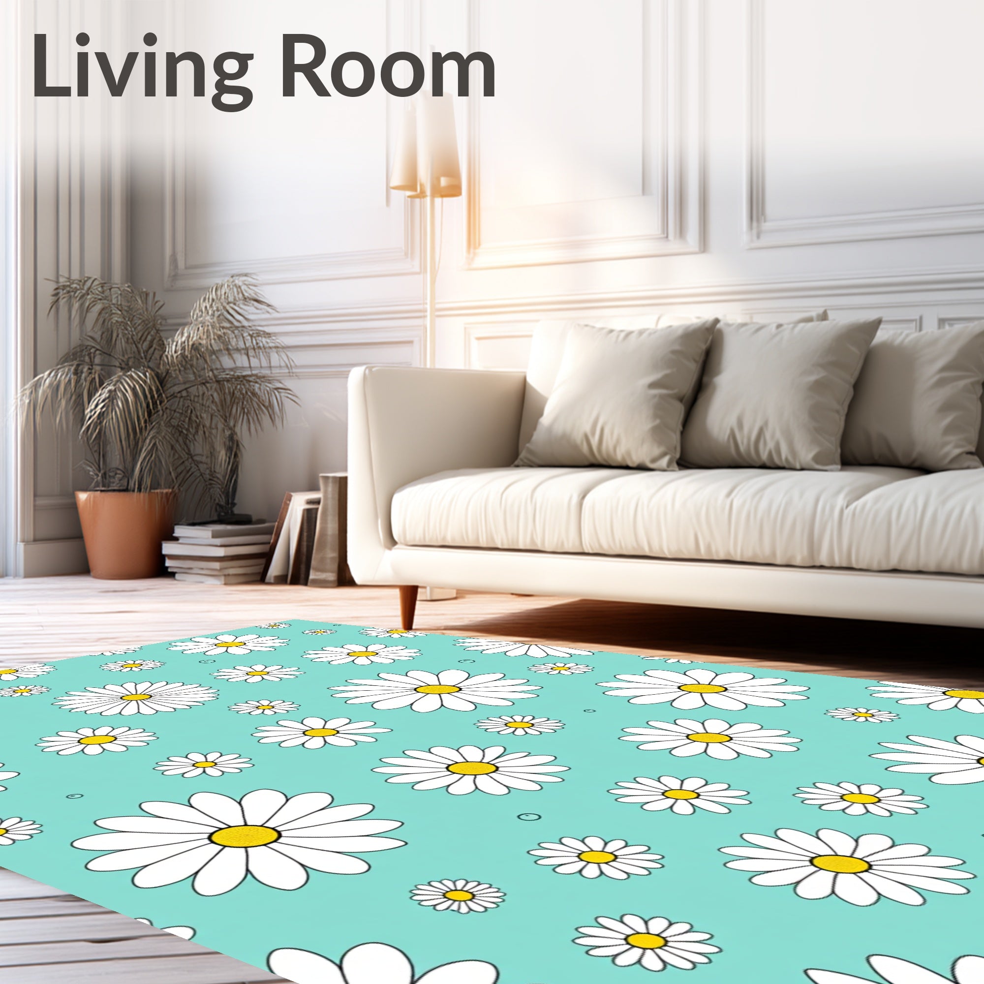 Flatwoven High Traffic Area Rug, Whimsical Daisy Chain Bloom, Non Slip, Stain Resistant, Washable Area Rugs for Living Room, Bedroom (Blue) Overview: