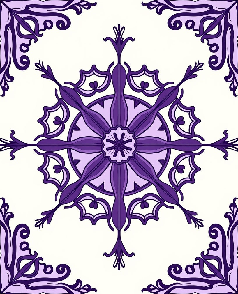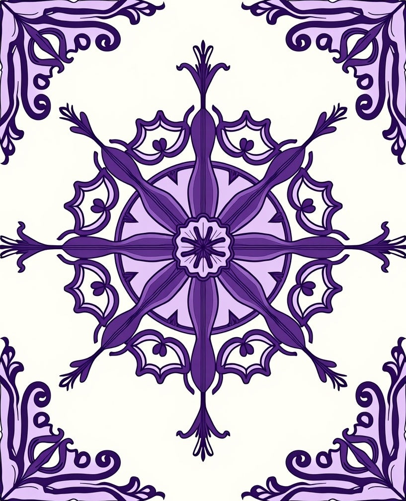 Whimsical Floral Medallion with Vintage Lattice Motifs (Purple)